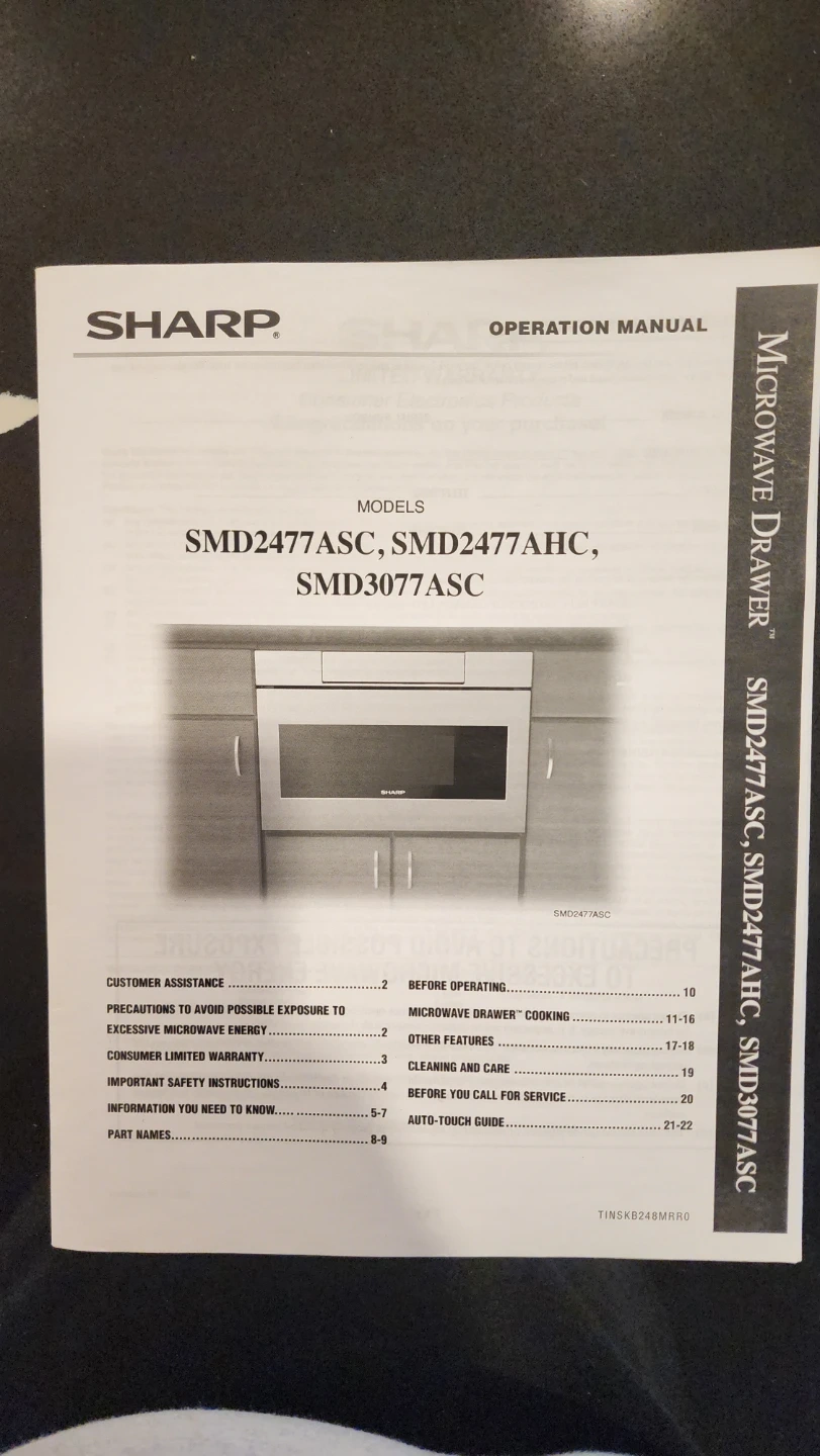 Sharp microwave drawer model SMD2477ASC. It's a drawer style microwave for undercabinet installation. Great for a modern kitchen.