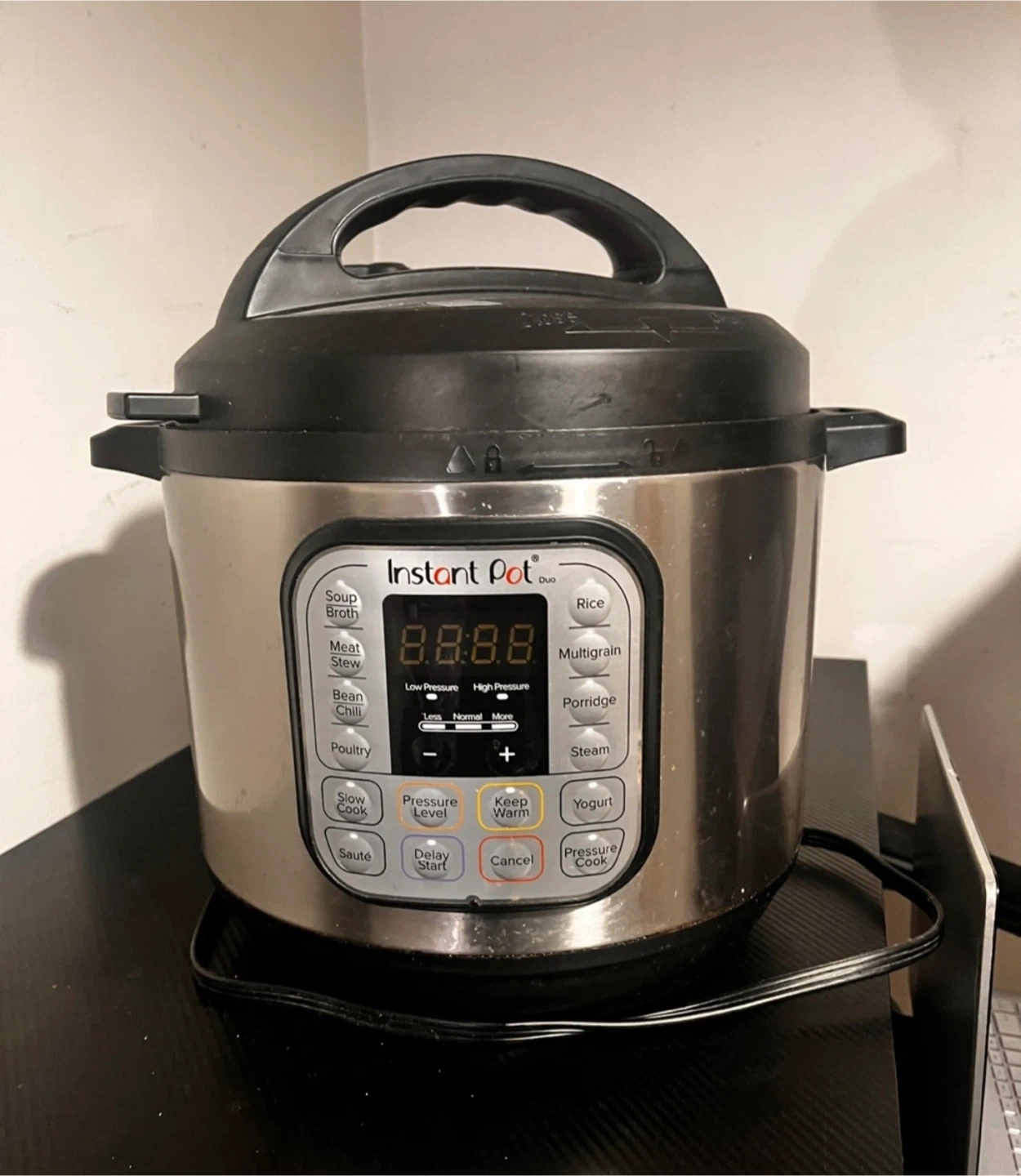 Instant Pot Duo 7-in-1 Electric Pressure Cooker, Slow Cooker, Rice Cooker, Steamer, Sauté, Yogurt Maker, Warmer & Sterilizer, 8 Quart - Stainless Steel inner pot. Easy to use, easy to clean, fast, versatile, and convenient. It replaces 7 kitchen appliances. With 13 built-in smart programs, cook your favourite dishes with the press of a button. The tri-ply, stainless steel inner pot offers quick, even heating performance. The Instant Pot Duo offers quality, convenience and versatility. Excellent condition, like new. Used only twice. From smoke-free, pest-free, and pet-free home.