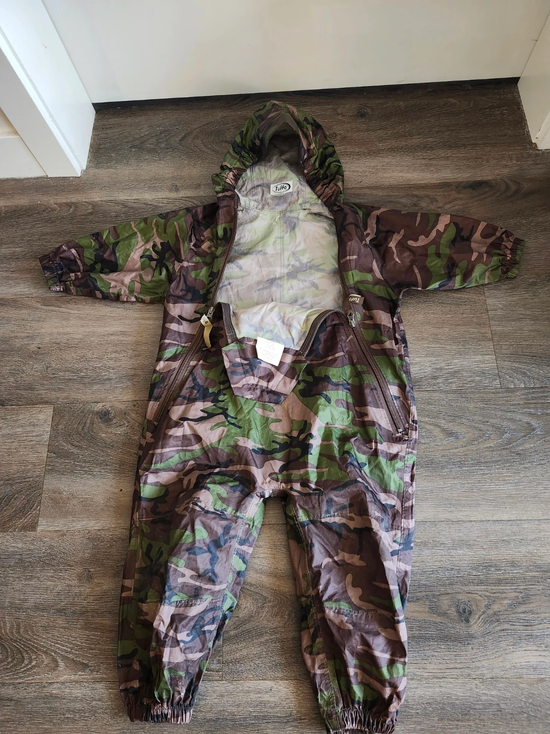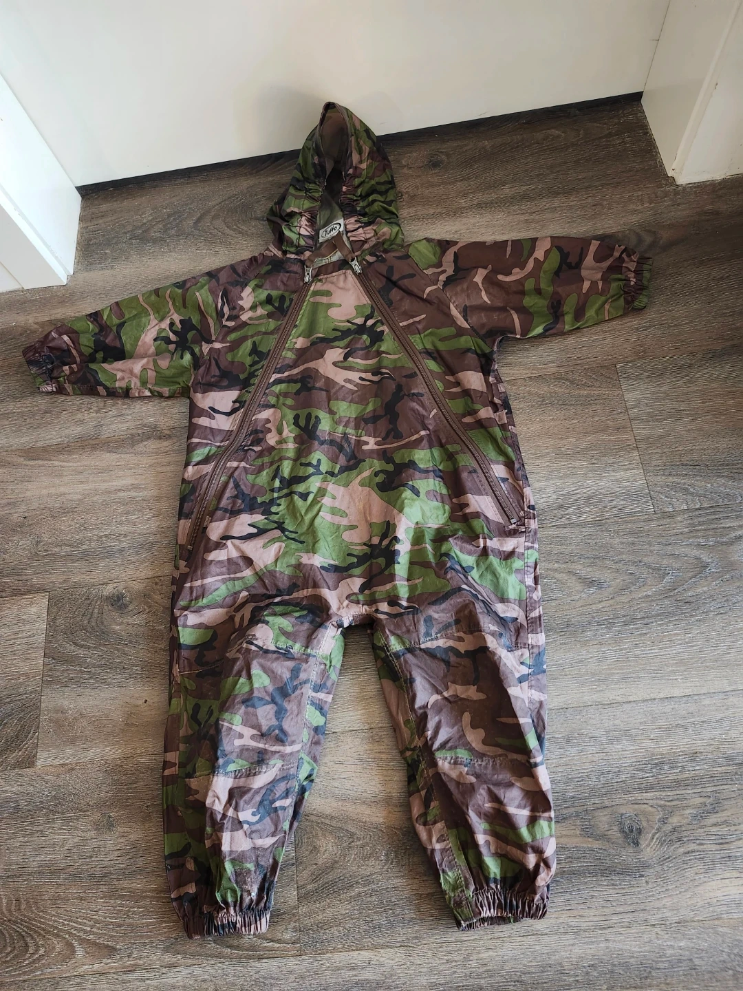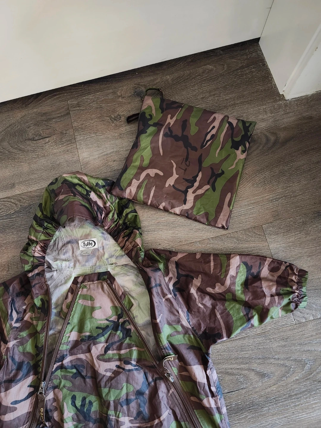 This Tuffo camouflage rain suit is perfect for keeping your little one dry and protected. It's made of waterproof material and features a full zipper closure. Includes a handy stuff sack for easy storage! Size 2 Toddler.