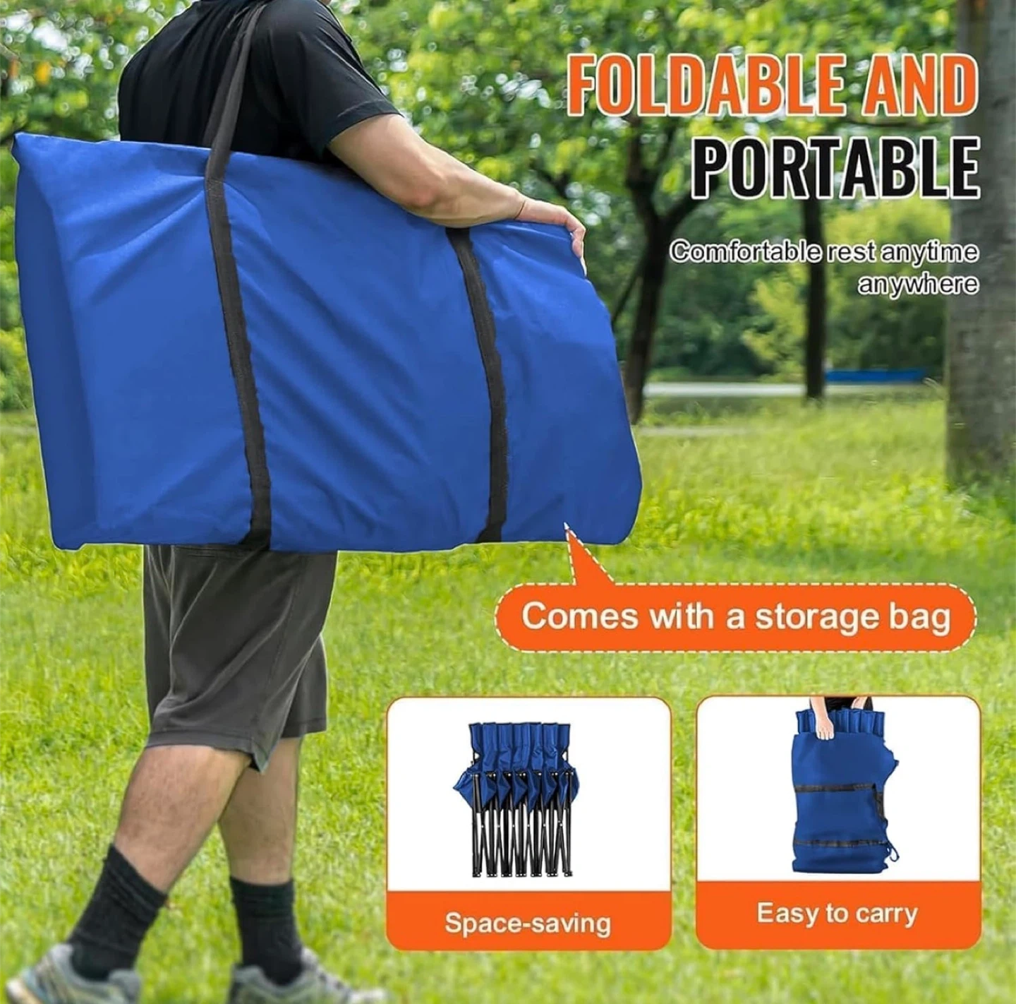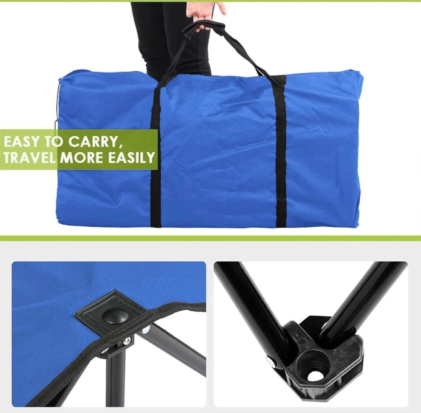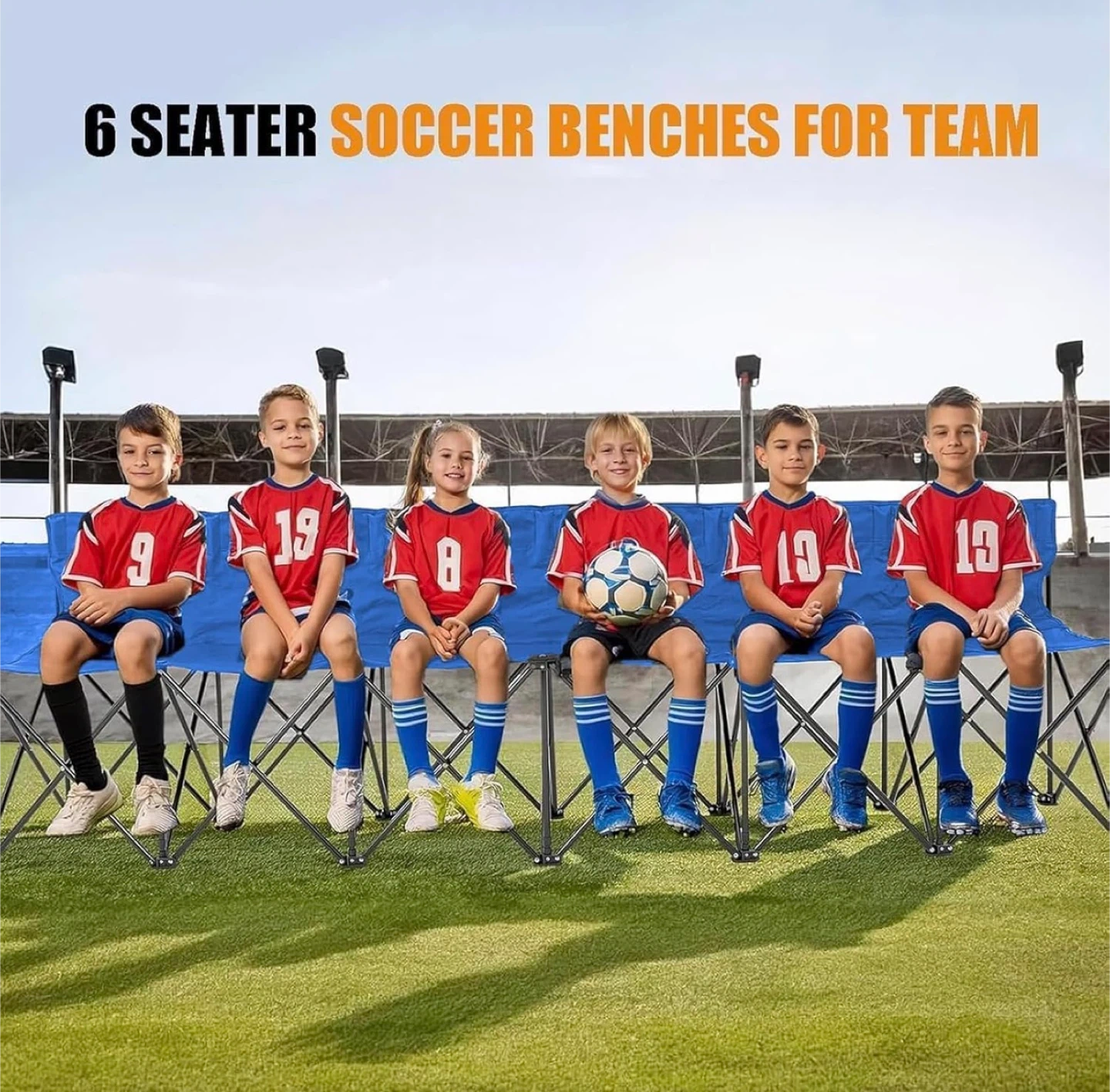 This 6-seater portable bench is made from durable 600D Oxford fabric and features a thickened iron frame for sturdiness. It's waterproof and measures 240 cm long, 82 cm high, and 45 cm deep. The extra hand-grip increases comfort during transport. Perfect for outdoor events or team seating!