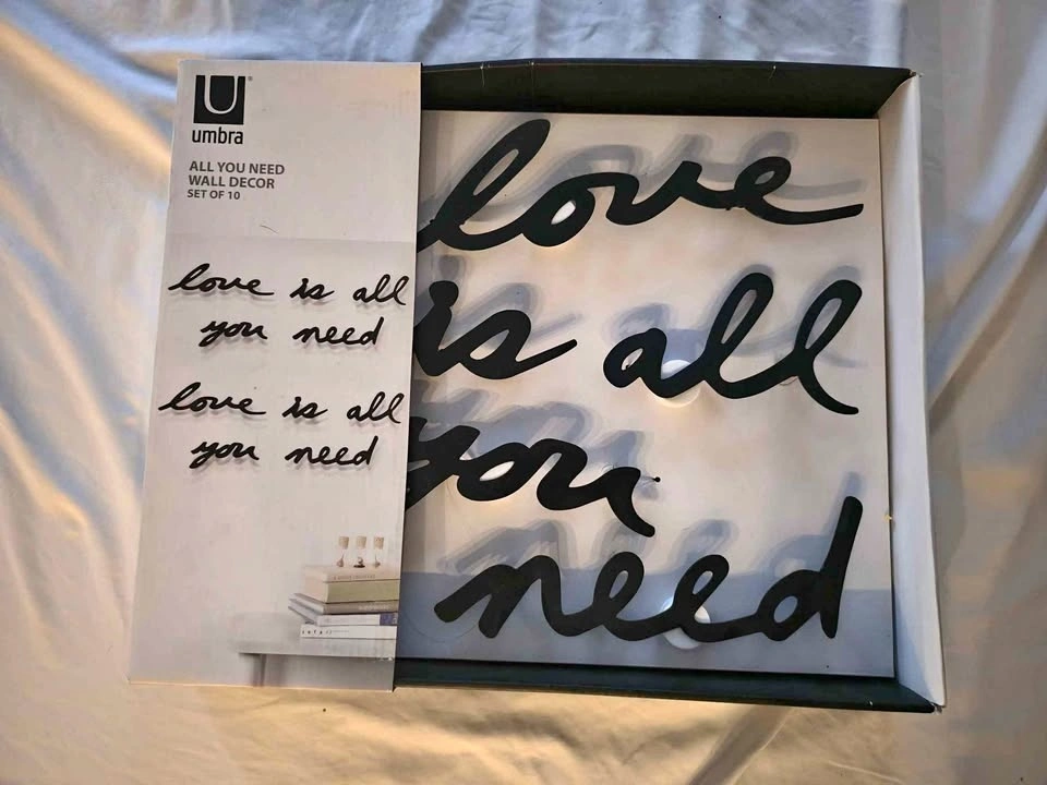 Buy & SellNew Umbra Sign - All You Need Is Love x2New Umbra Sign - All You Need Is Love x2$25New in box. Features a song quote: 'Love is all you need.'WHERE TO MEETCheck LocationView MapSELLER633618Stratford100 reviews0 chats·0 favorites·0 viewsSEND CHAT TO SELLERHi 633618! I’m interested in your listing.Hi 633618! I’m interested in your listing.Get the Karrot app to chatSign In to chat