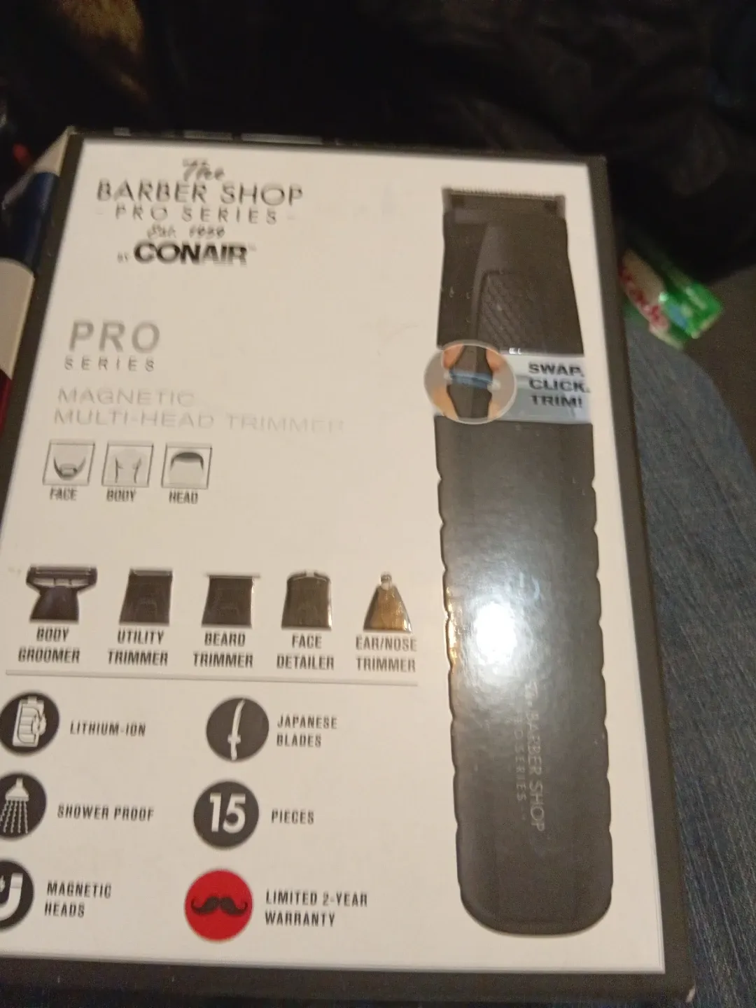 This Conair Pro Series magnetic multi-head trimmer features Japanese blades and a lithium-ion battery. It's showerproof and comes with 15 pieces. Magnetic heads offer easy swapping and trimming!