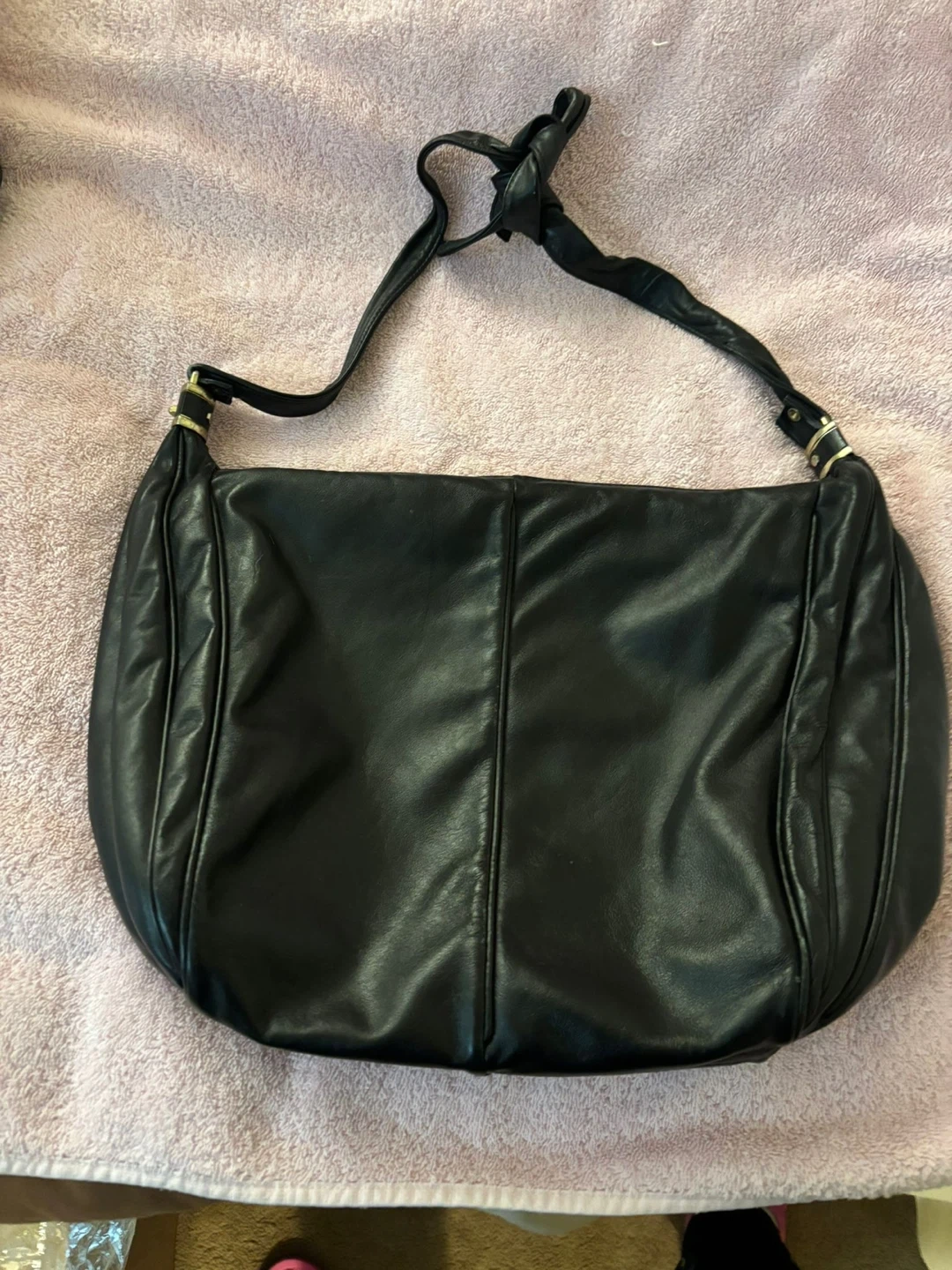 DKNY Black Leather Clutch with Silver Chain