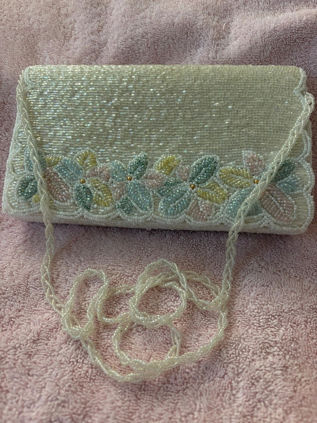 This is a black leather clutch from DKNY. It features a silver zipper closure and a detachable silver chain strap. It's a stylish accessory for various occasions!