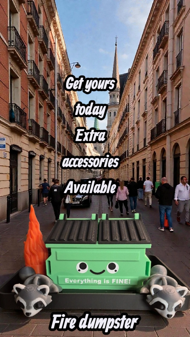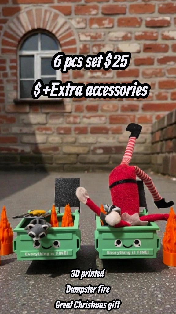 Selling a cute 3D printed dumpster fire set! It includes extra accessories and would make a great Christmas gift! The set includes 6 pieces.