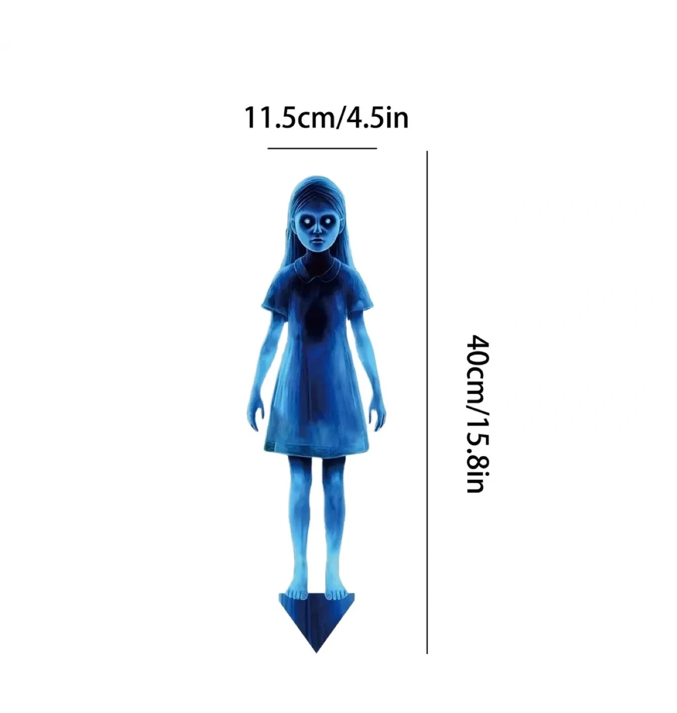 Add a spooky touch to your yard with this ghost girl decoration. It stands 40cm (15.8 inches) tall and measures 11.5cm (4.5 inches) wide. This eerie figure is perfect for Halloween or any spooky-themed event!