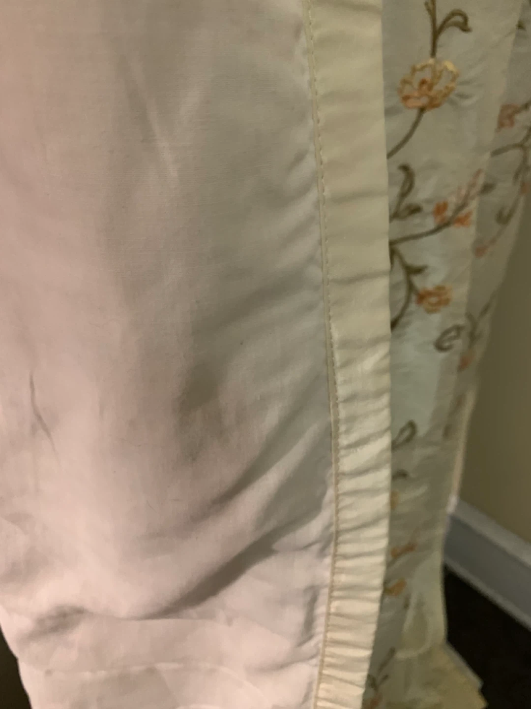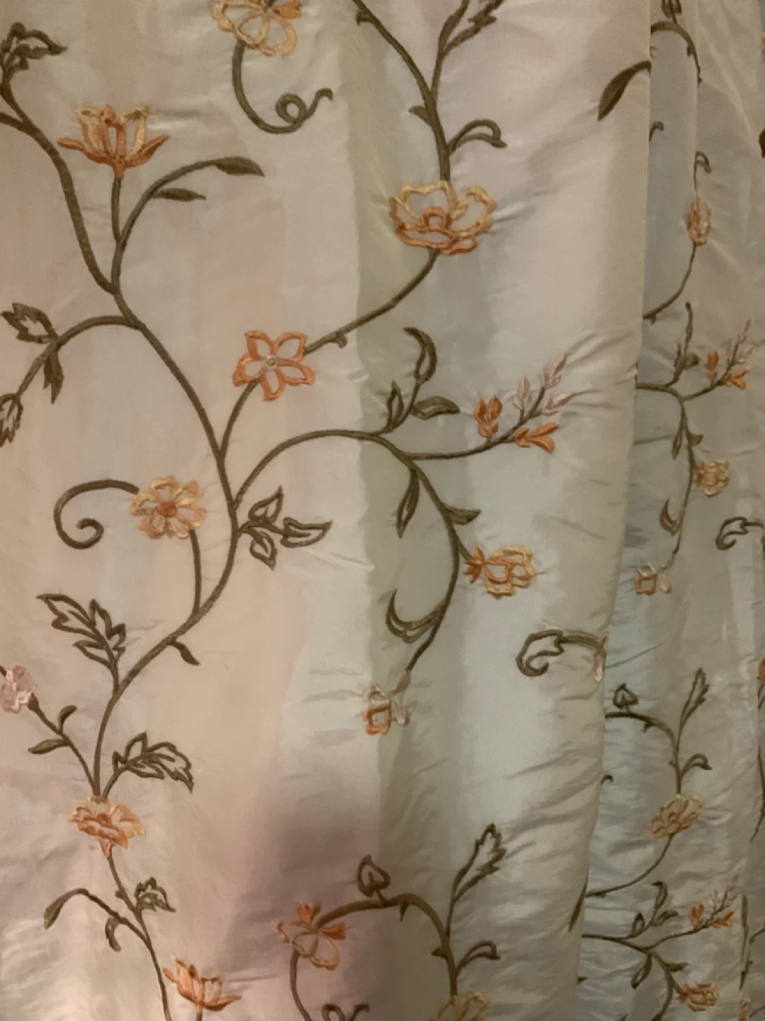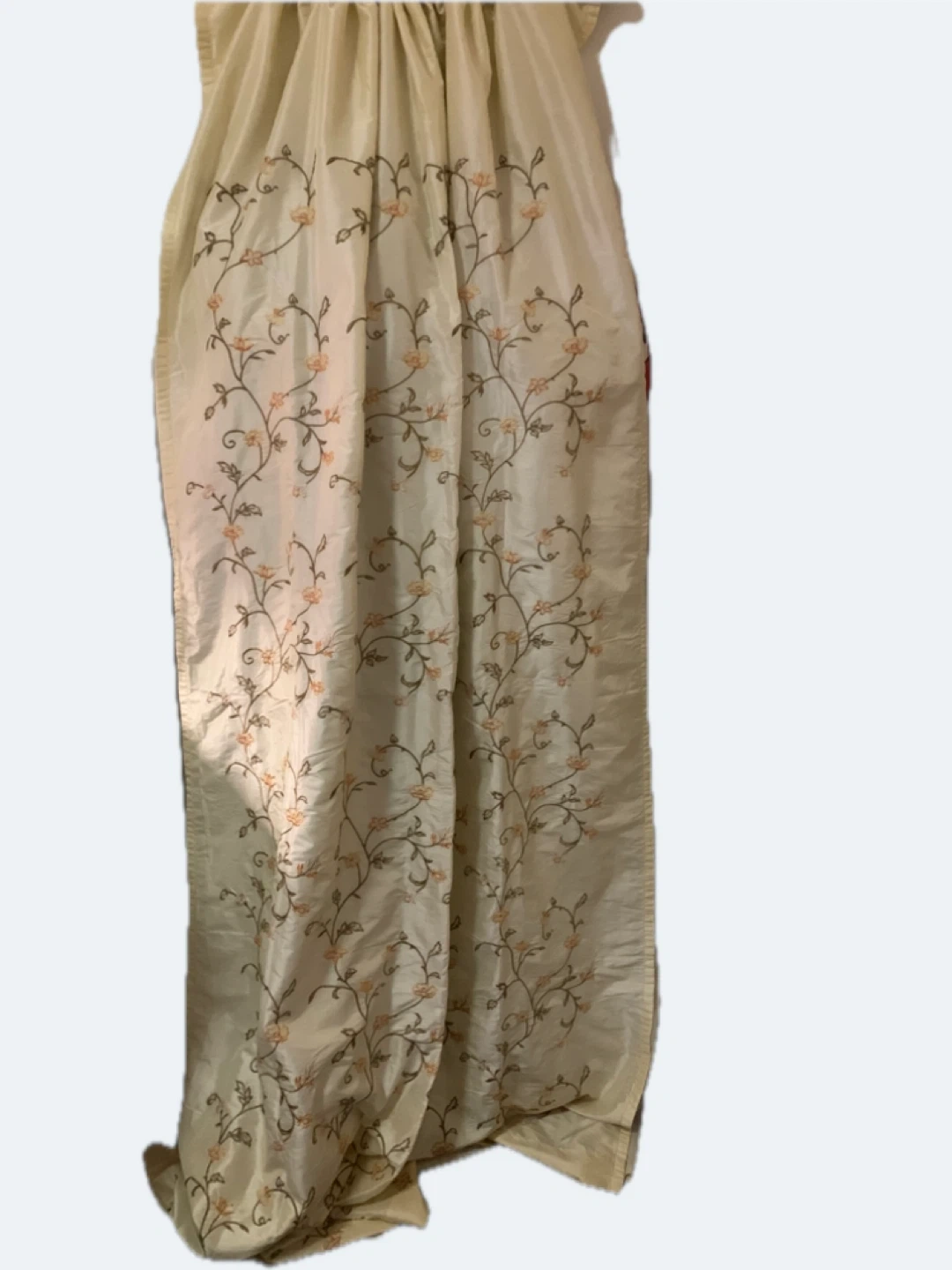 Three beautiful curtain panels, embroidered, natural color polyester with back in white cotton - non smoker no pets house, clean and washed.