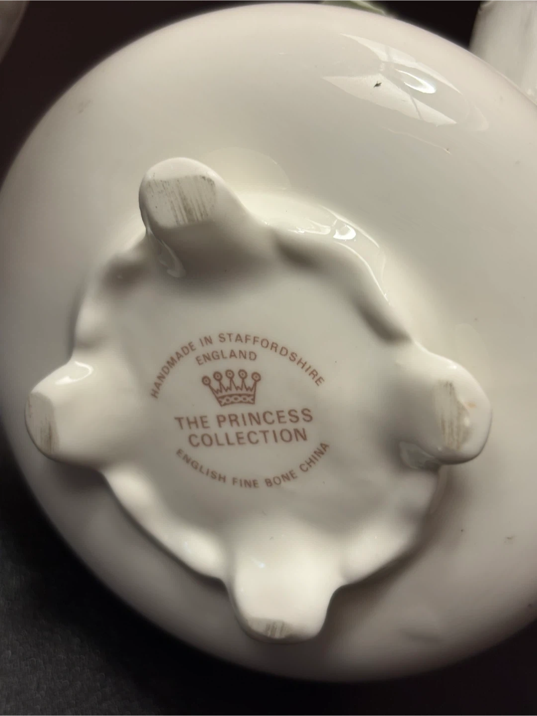 A lovely porcelain flower arrangement handmade in Staffordshire, England. Crafted from English fine bone china, it features a colourful mix of roses and carnations. Adds a touch of elegance to any space!
