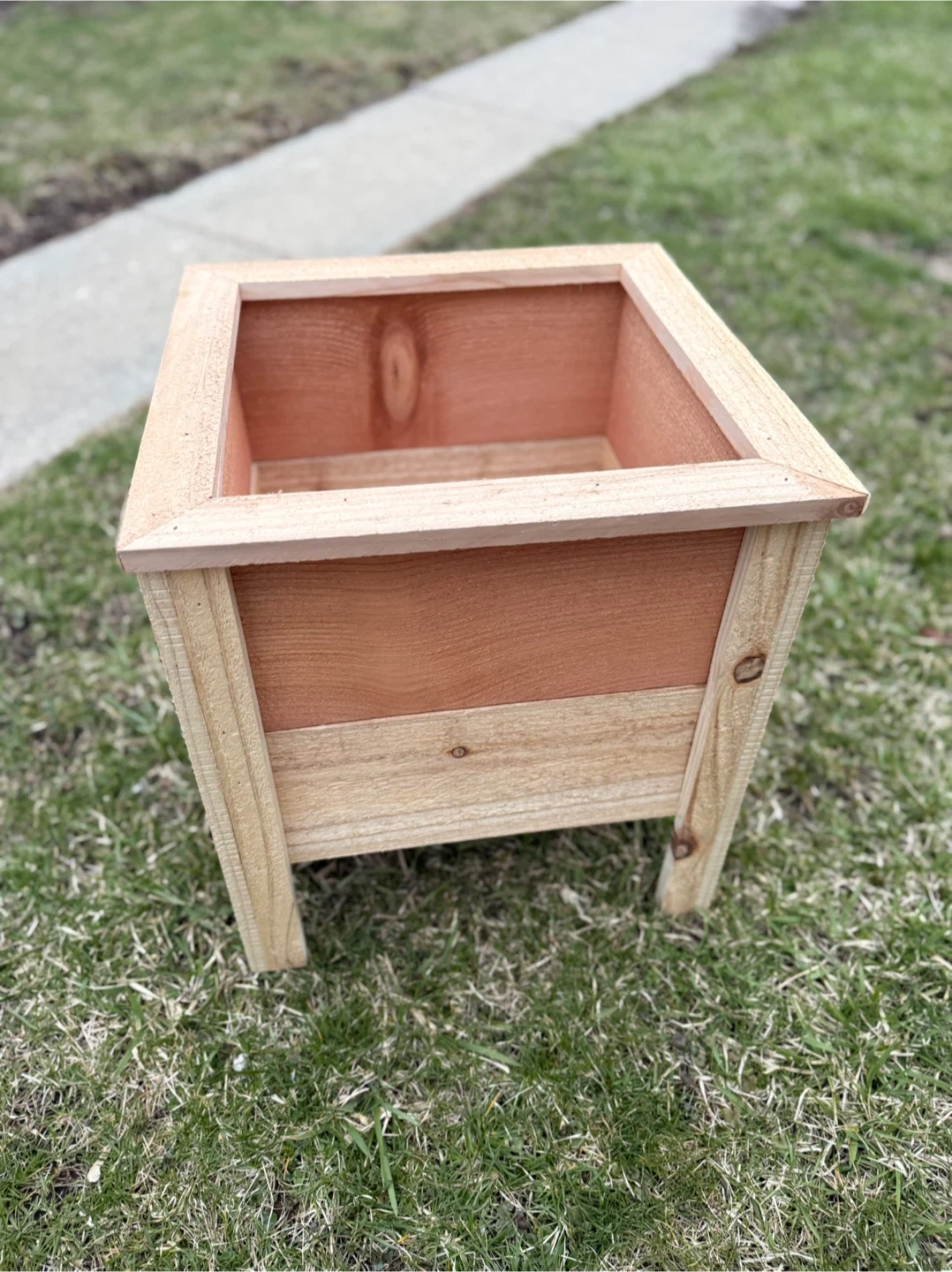 Handmade wooden planter boxes, perfect for front porch, patio, or garden.