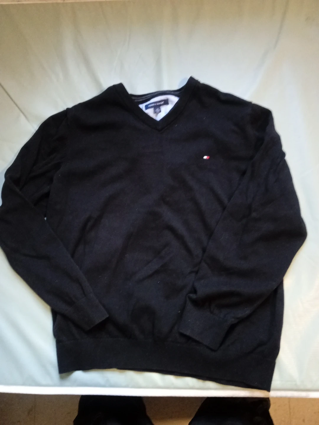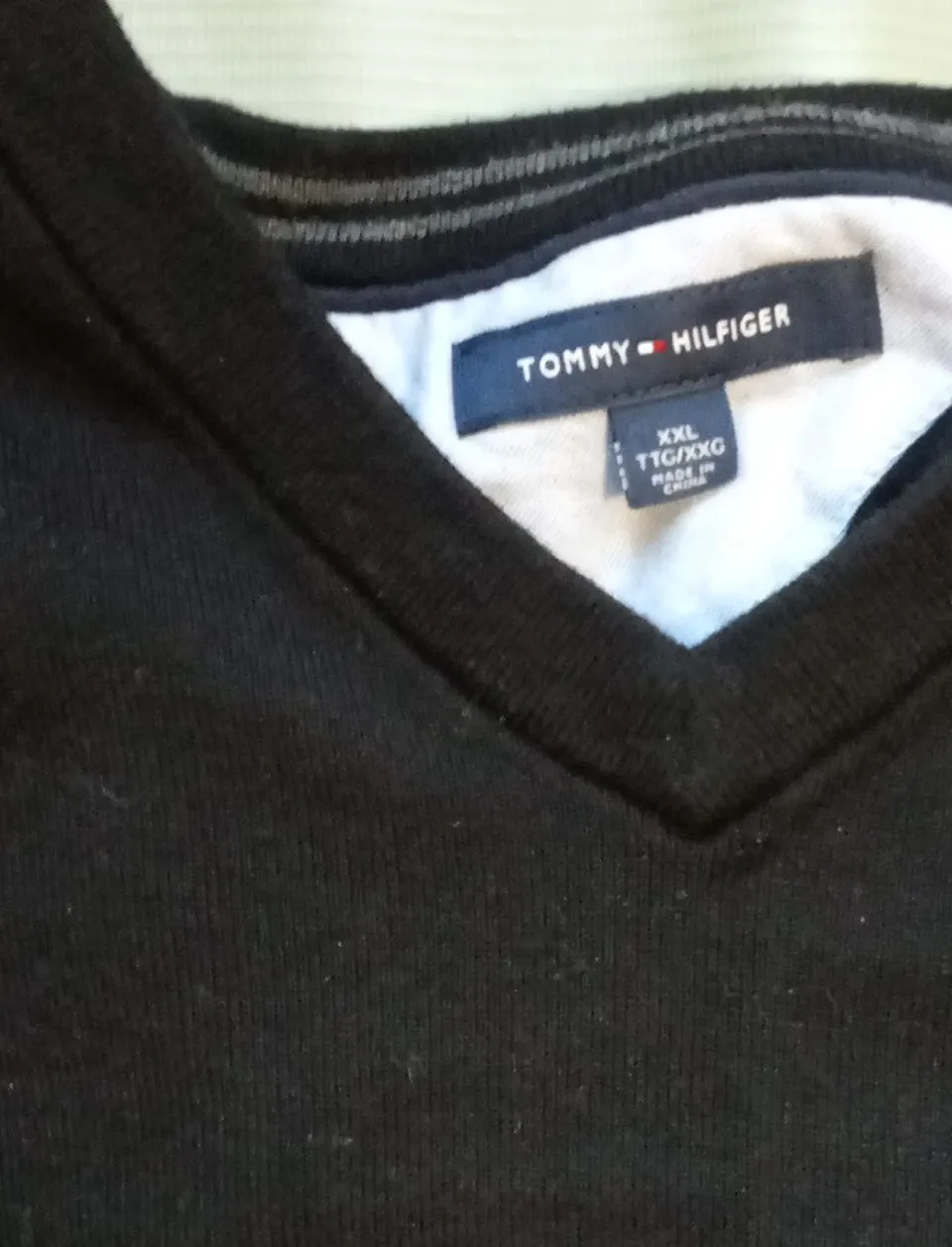 Tommy Hilfiger v-neck sweater. It's black and size XXL. Made in China.