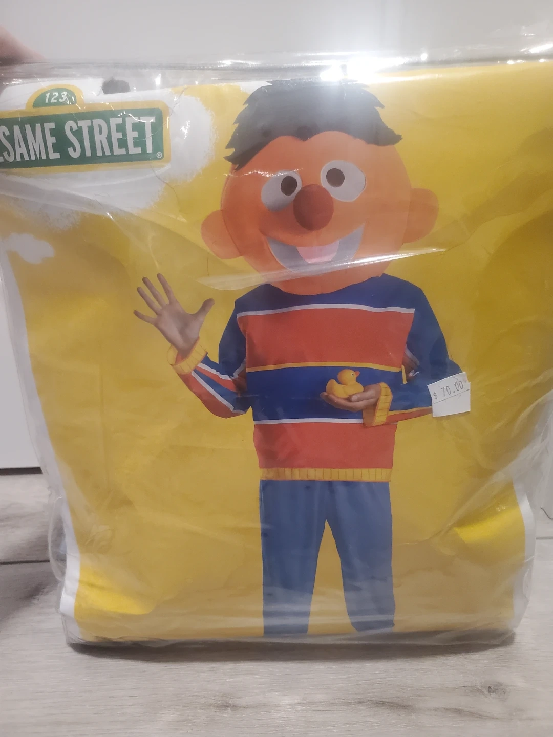 Buy & SellSesame Street Ernie CostumeSesame Street Ernie Costume$10This is a Sesame Street Ernie costume. It comes with the signature striped sweater and blue pants. Men's size large WHERE TO MEETNo FrillsView MapSELLERKristenSpruce Village150 reviews0 chats·0 favorites·7 viewsSEND CHAT TO SELLERHi Kristen! I’m interested in your listing.Hi Kristen! I’m interested in your listing.Get the Karrot app to chatSign In to chat