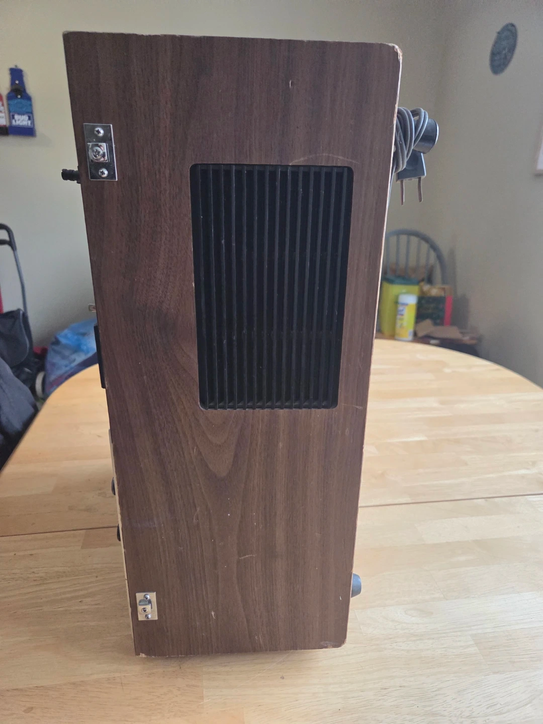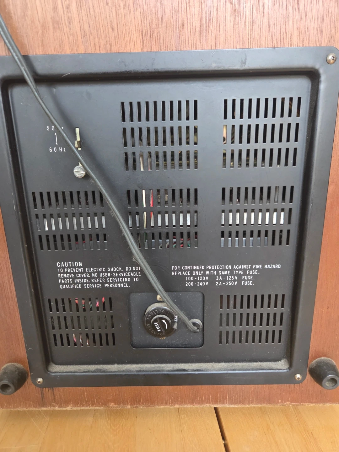 This is an AKAI M-10 reel-to-reel tape recorder. It runs on AC100-240V power and has a 170W consumption. Features include multiple tape speeds and VU meters.