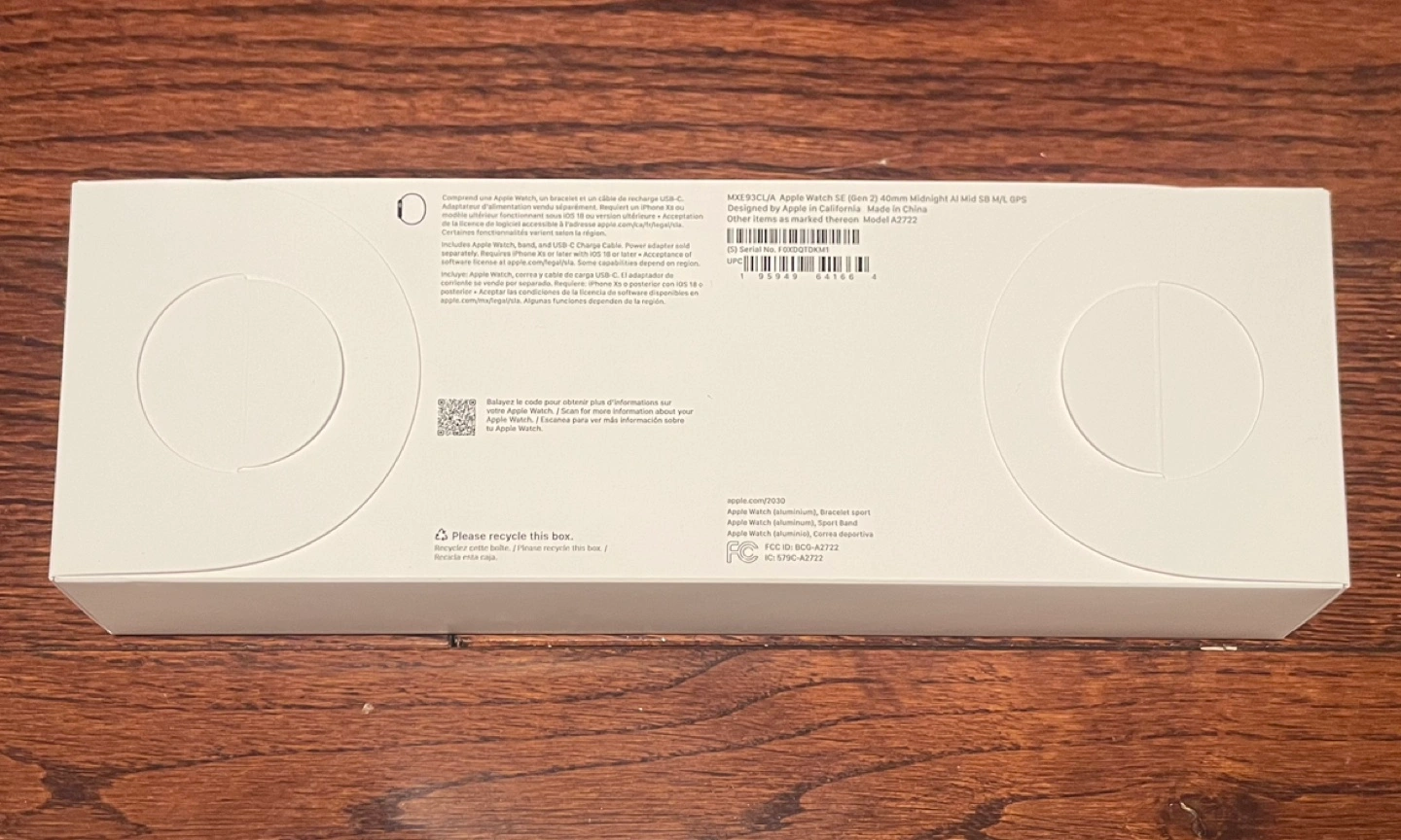 Brand new, unopened Apple Watch SE (Gen 2) GPS Mid SB . Case size is 40mm, band colour is Midnight Aluminum, band size is M/L.
