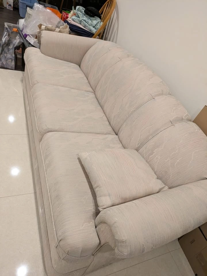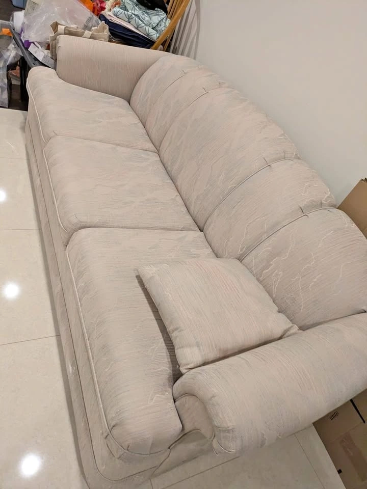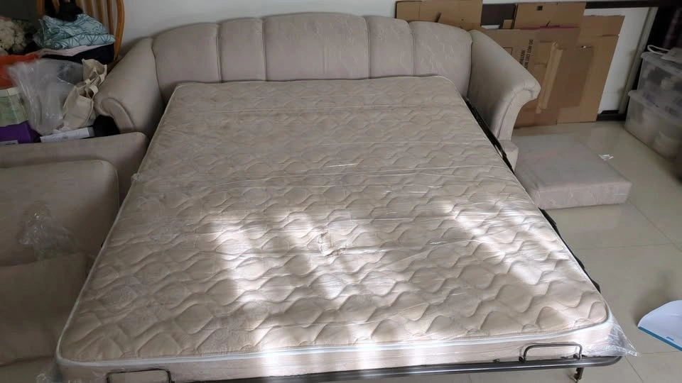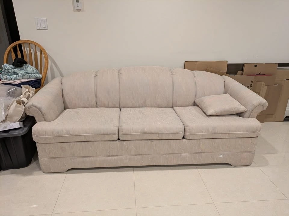 Sturdy and clean 3 seater sofa bed for sale. Easy to set up and convert to bed and couch. Mattress is 70 inch by 60 inch (sofa queen) and is still in the plastic wrap. Dimensions: 82 inches wide, 34 inches long, 24 inches tall (folded up). Pick up in Vancouver only, near the Fraserview area. In excellent condition and clean.