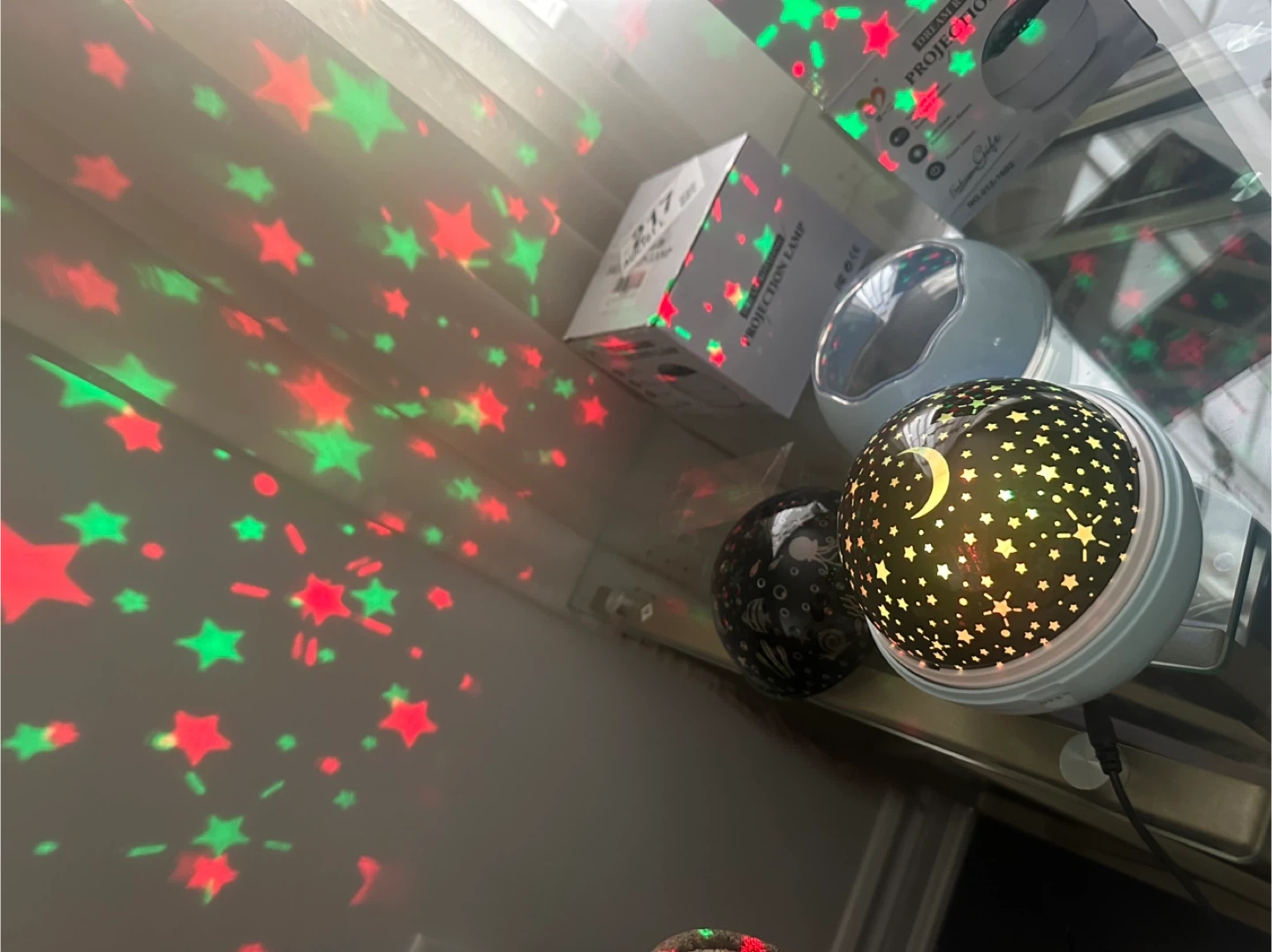 Selling a Dream Rotating Projection Lamp! It creates a fun atmosphere with its sun light mode and light colour conversion button. It also has a power switch for easy use. The box is included