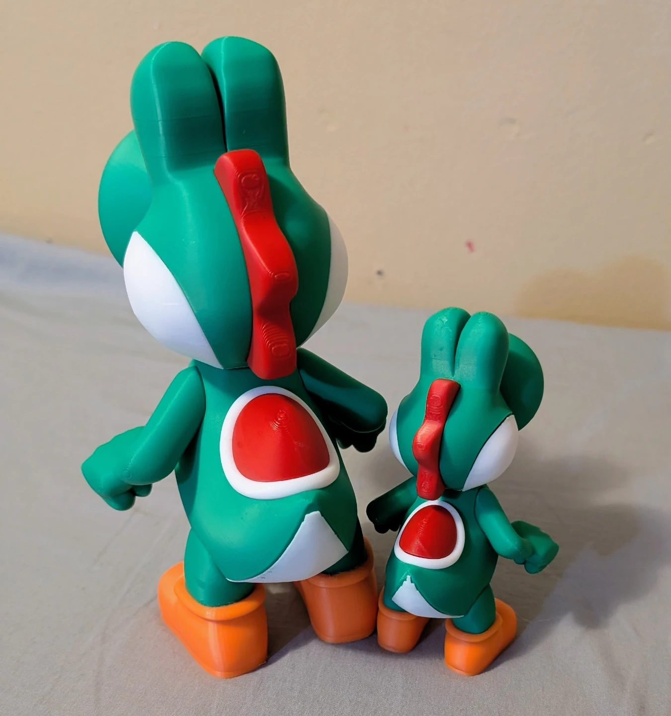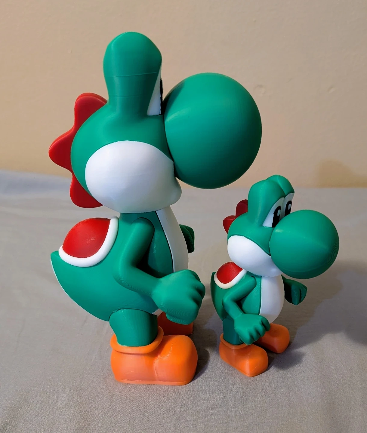 These are two Yoshi figurines from the Nintendo Video Game Super Mario series. They are 3D Printed. One full size (25cm tall) and one small size (15cm tall). They're great collectibles for any Mario fan! All for $5.