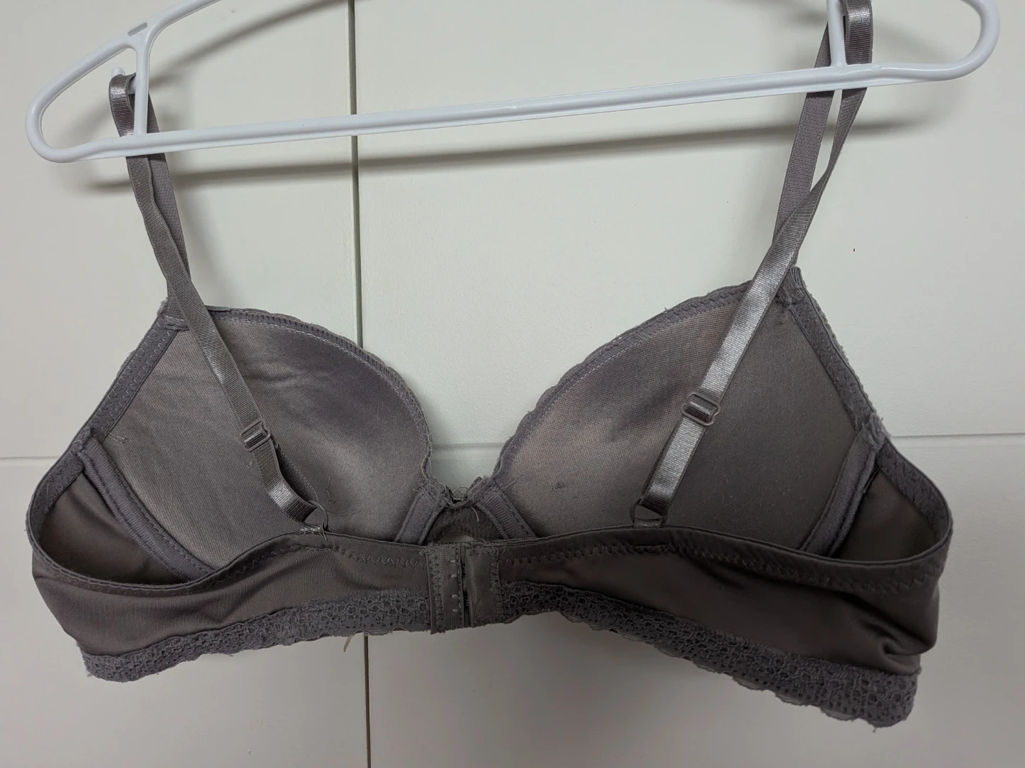 Jessica Simpson push-up bra in a soft grey colour. It features lace trim and a small bow detail. Underwire support with adjustable straps. Size 34C.