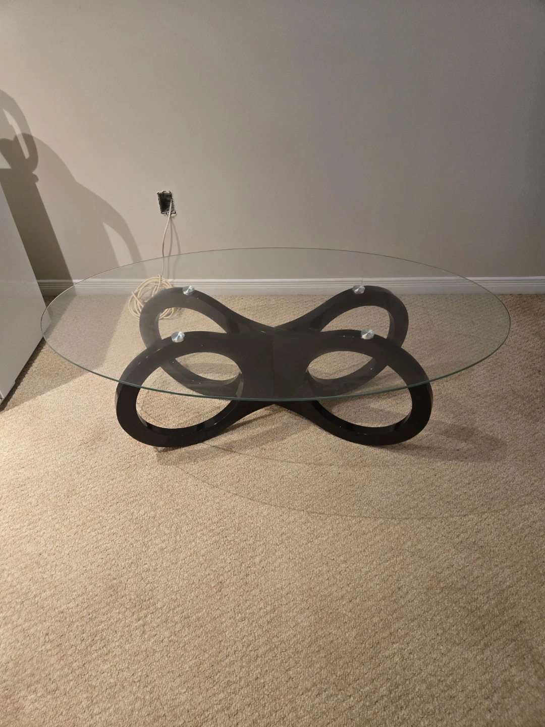 Glass Top Coffee Table with Black Infinity Base