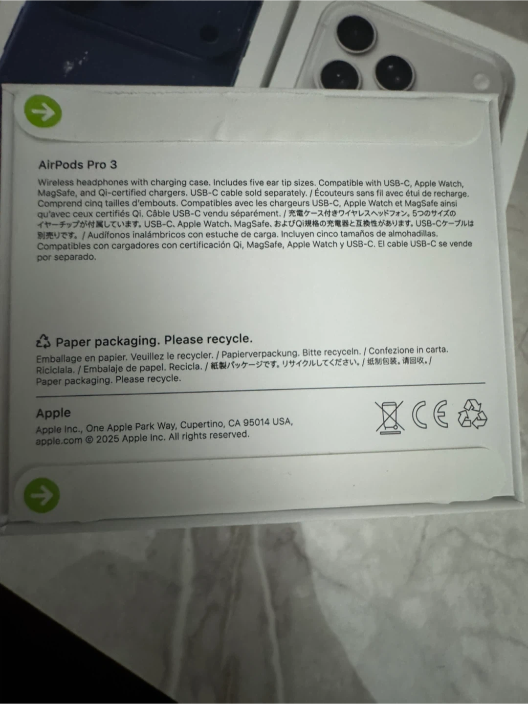 Wireless headphones with charging case. Comes with five ear tip sizes. Compatible with USB-C, Apple Watch, MagSafe, and Qi-certified chargers. Includes original box.