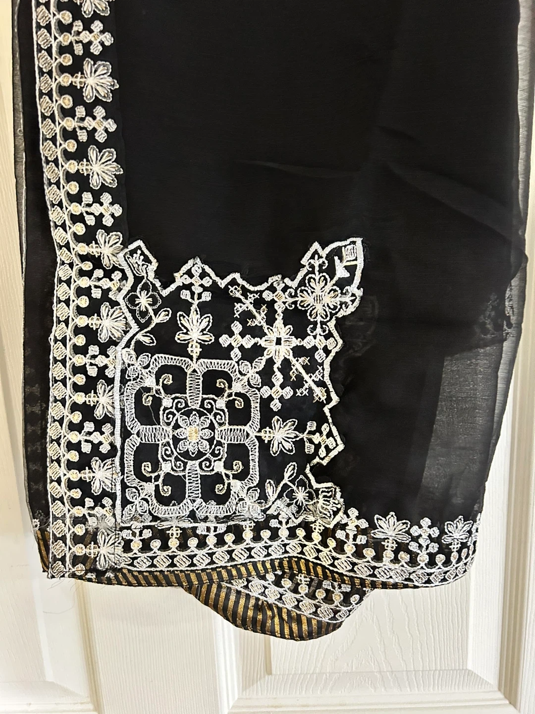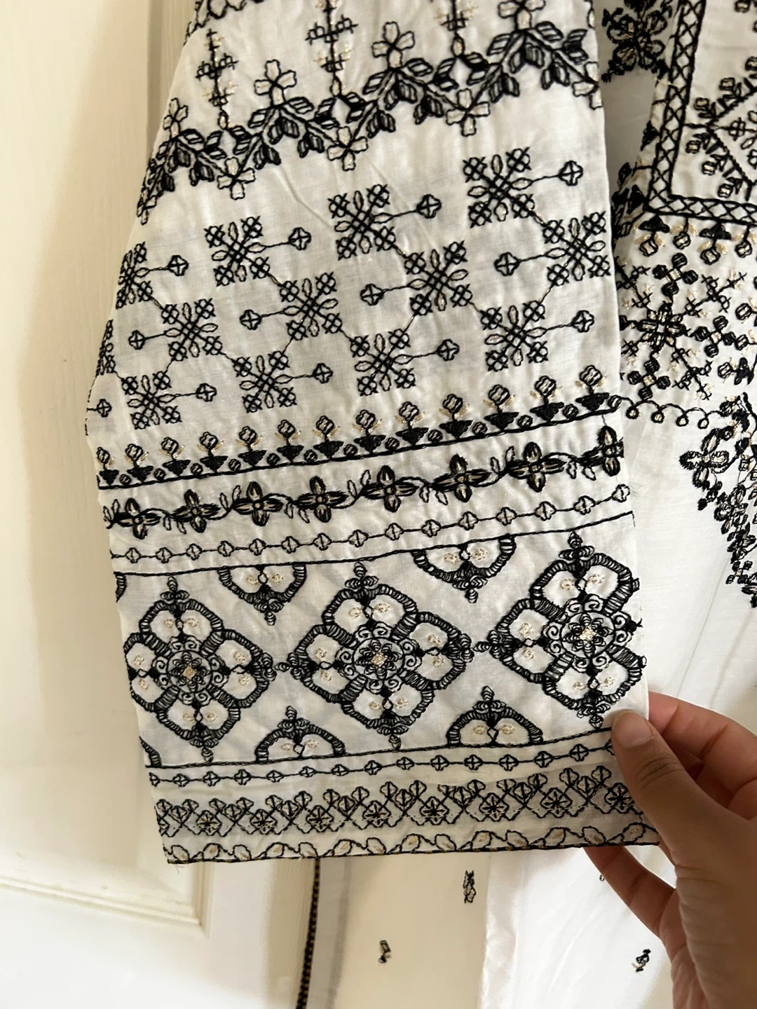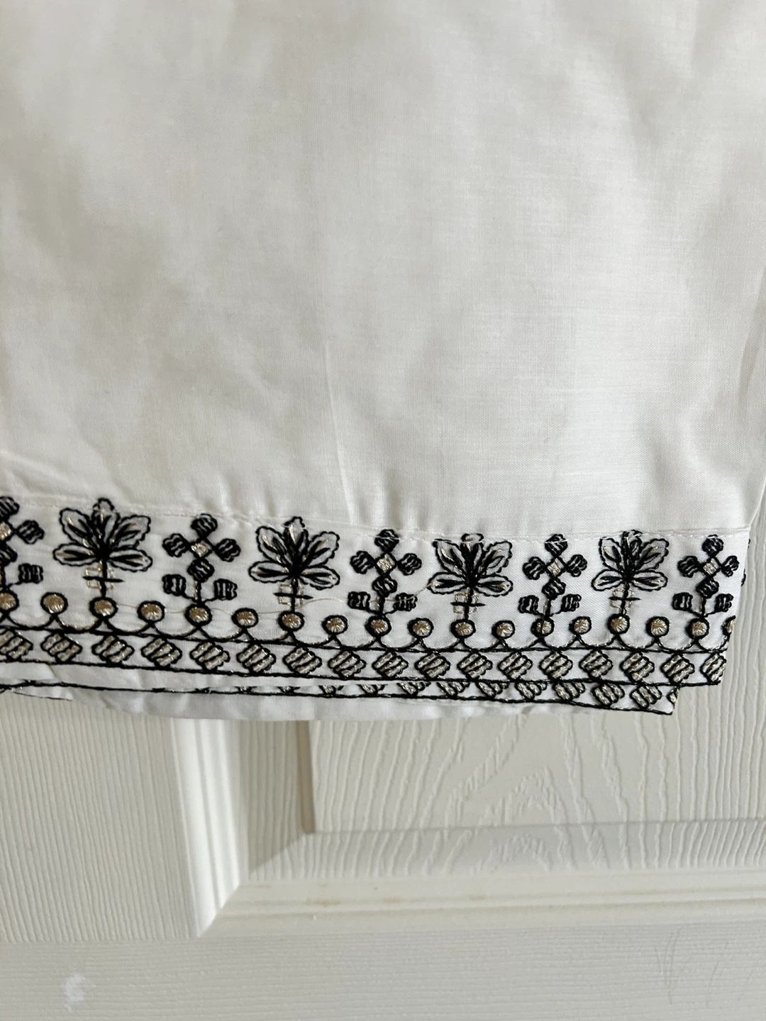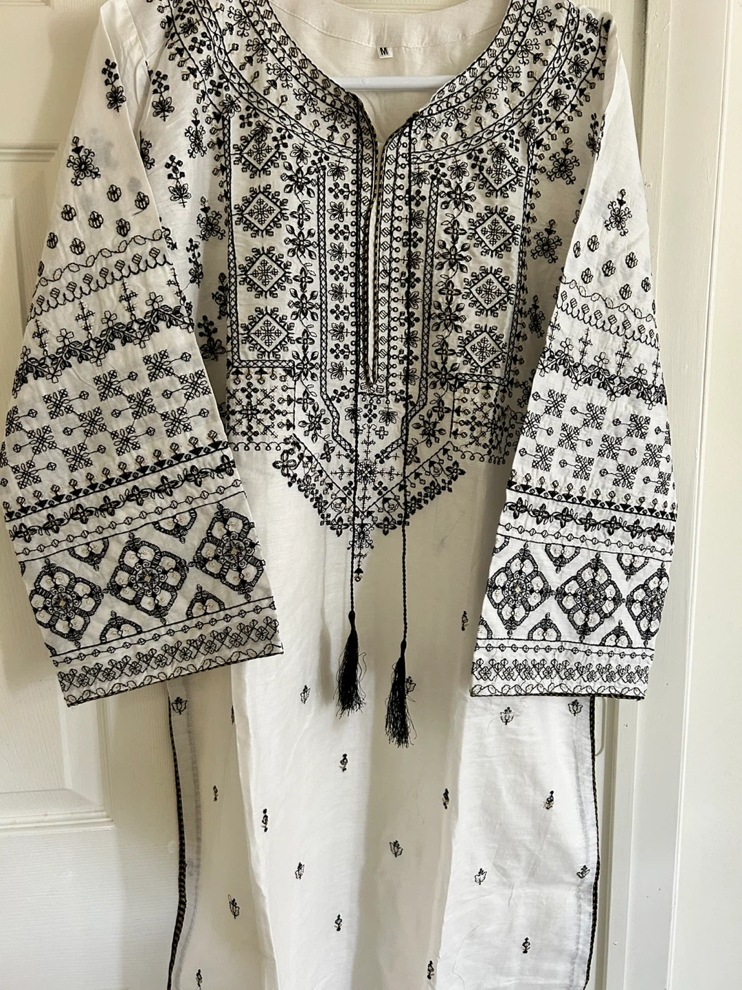 Selling a beautiful white kurti with intricate black embroidery. It's a size M and in great condition! The detailing is really lovely and it’s perfect for a casual or semi-formal occasion