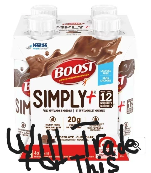 Looking to sell or trade for Boost Simply+ in Chocolate flavor (see 4th photo).
