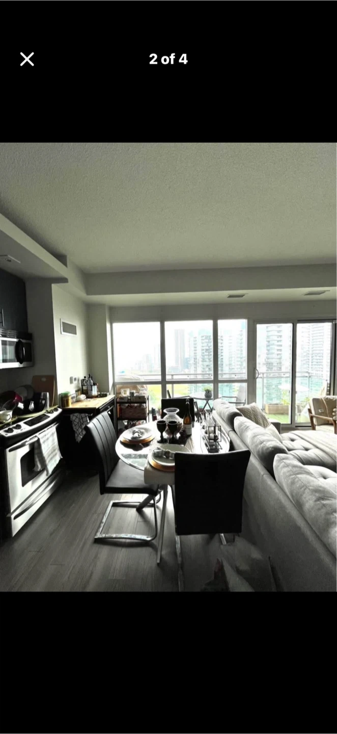 Beautiful glass top breakfast table from The Brick. It comes with three chairs! It can seat four people.