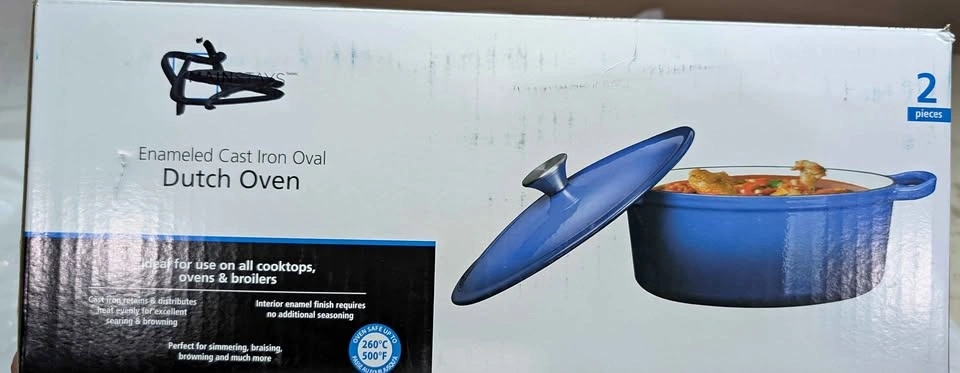 Brand new Mainstays Dutch oven. Just a bit of the enamel paint is chipped (as seen on last photo), but it does not affect the functionality whatsoever. I'm located near 130 St and 109 Ave in Surrey. Just message what time you'd like to pick up. Check my profile for other items.