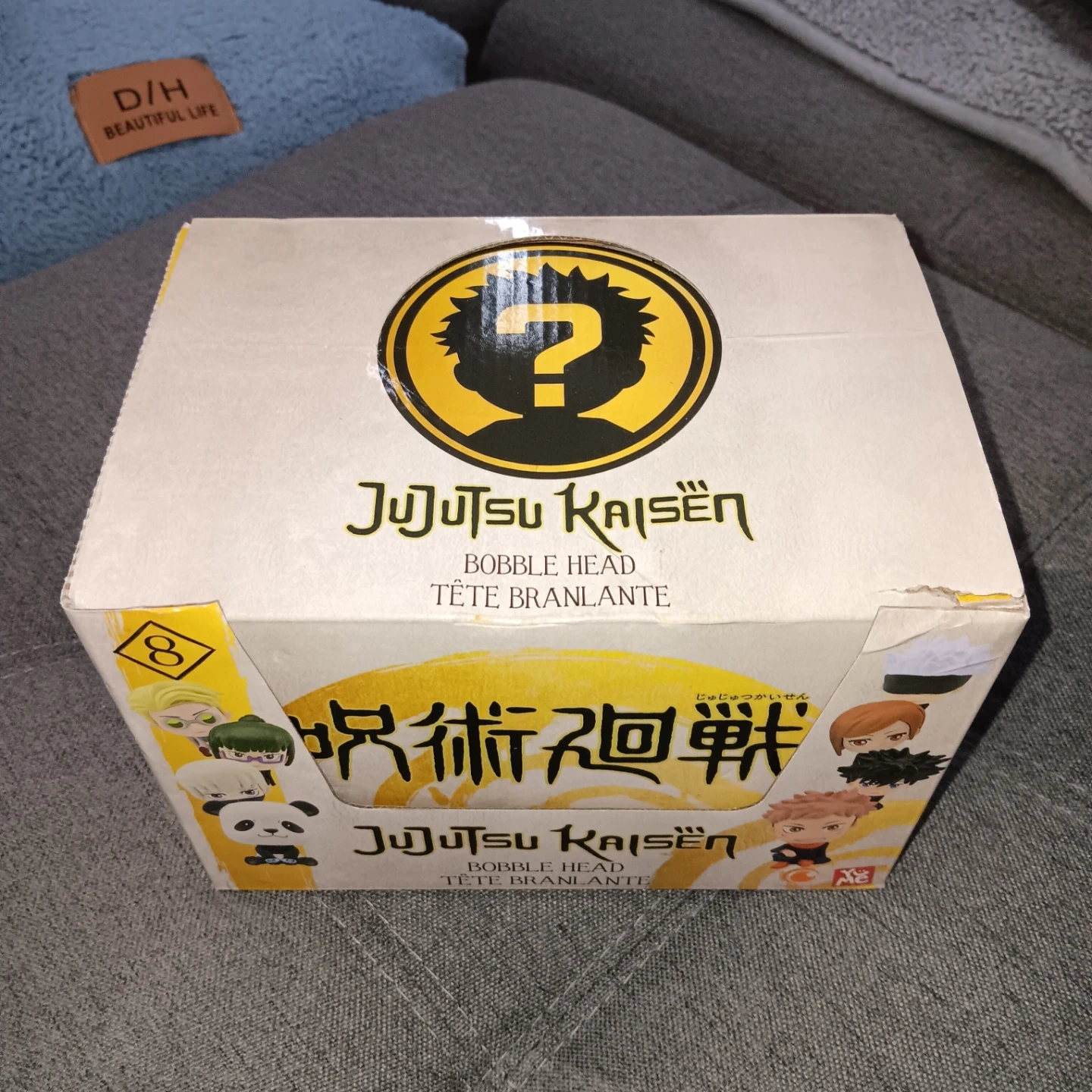 This is a Jujutsu Kaisen bobble head box set. It contains 12 blind boxes, perfect for any fan of the series. These collectible figures are great for display.