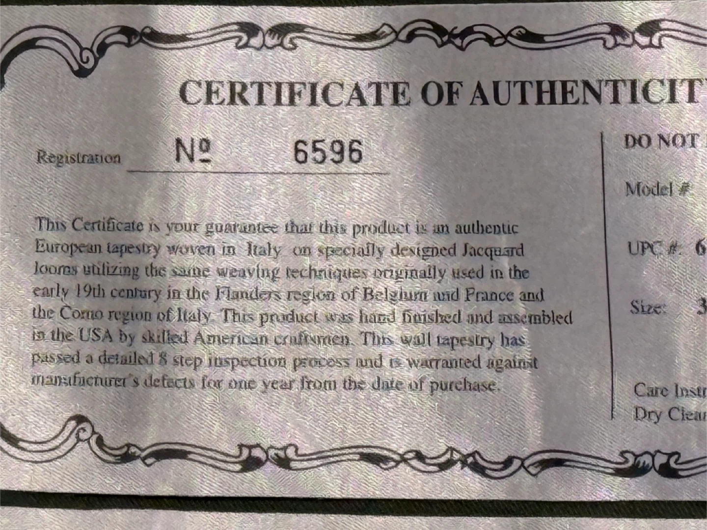 This authentic European tapestry features a floral vase design, hand-finished and assembled in the USA. Woven on Jacquard looms utilizing traditional techniques. Measures 36 inches.