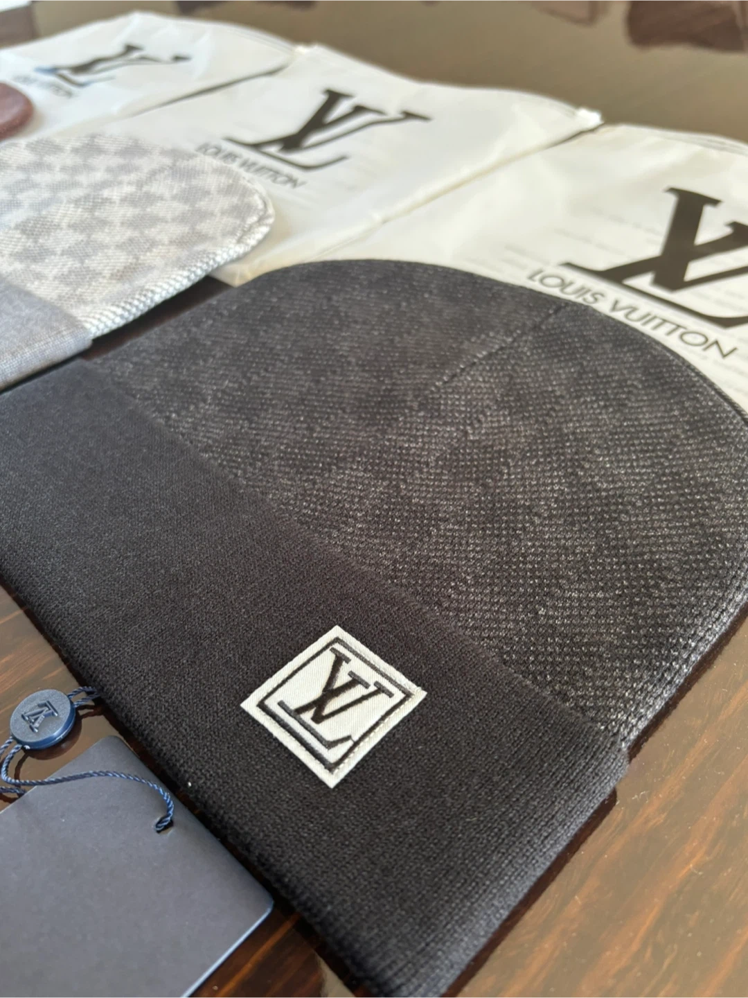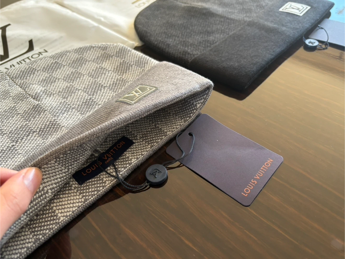 Set of three Louis Vuitton beanies. Includes dust bags for each hat. Various patterns and colours available. ( 35$ ) price negotiable