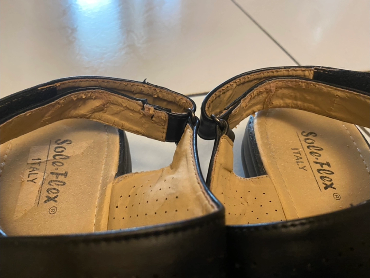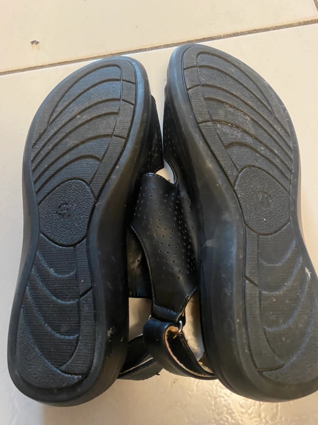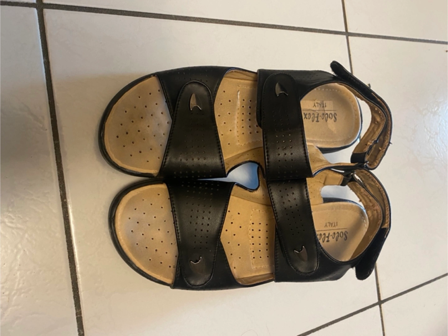 Selling a pair of Sole-Flex Italy sandals in black, size 41. They show some signs of wear but are still in good condition for everyday use