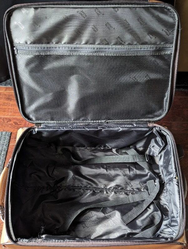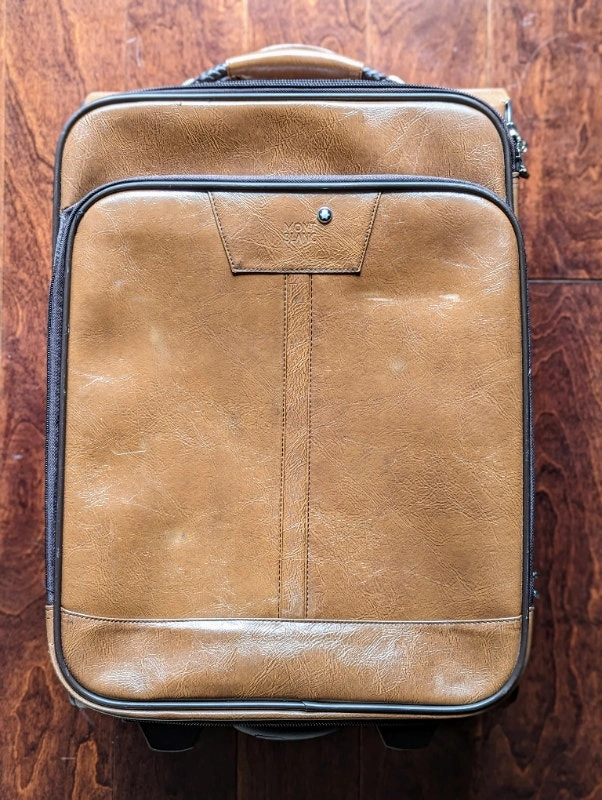 Genuine leather Montblanc carry-on luggage bag in very good condition. Standard size: 22" x 14" x 9". Weighs less than 3kg. Original retail price was $1000+tax. Meet in West GTA, flexible days and times. Cash only, no trades please.