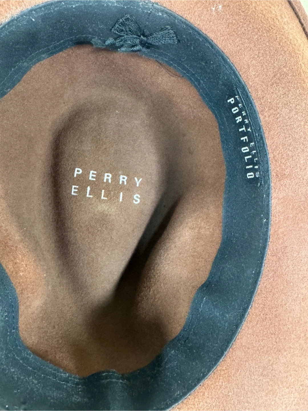 Perry Ellis Portfolio Fedora Hat Size 7 1/8 Brown