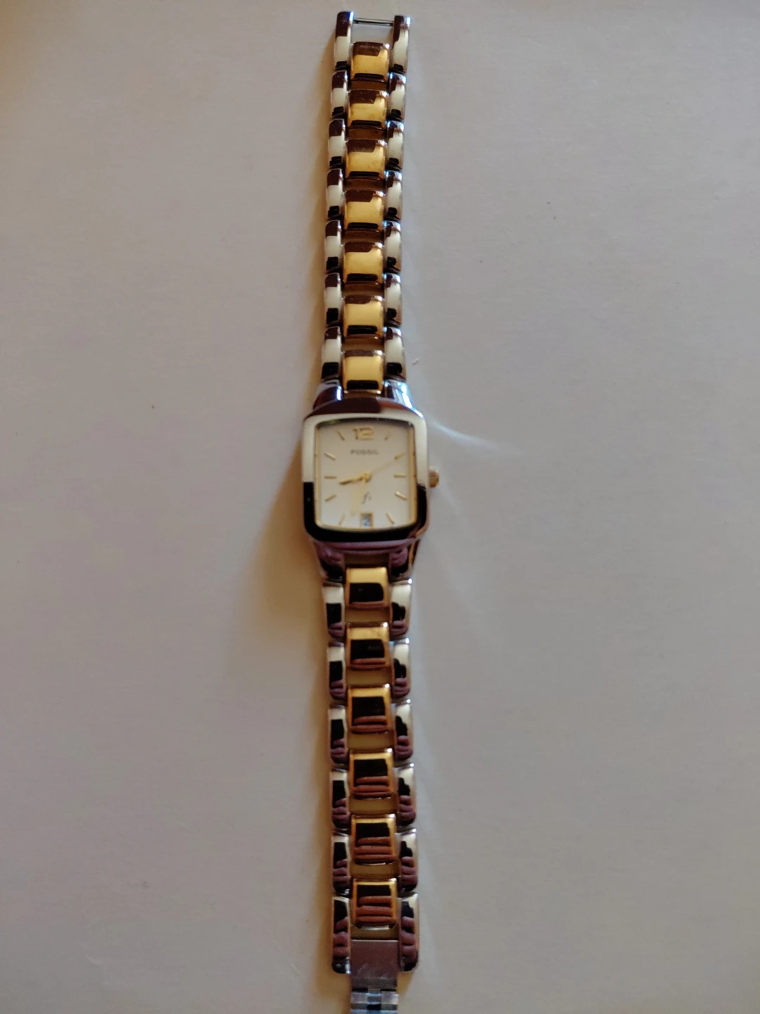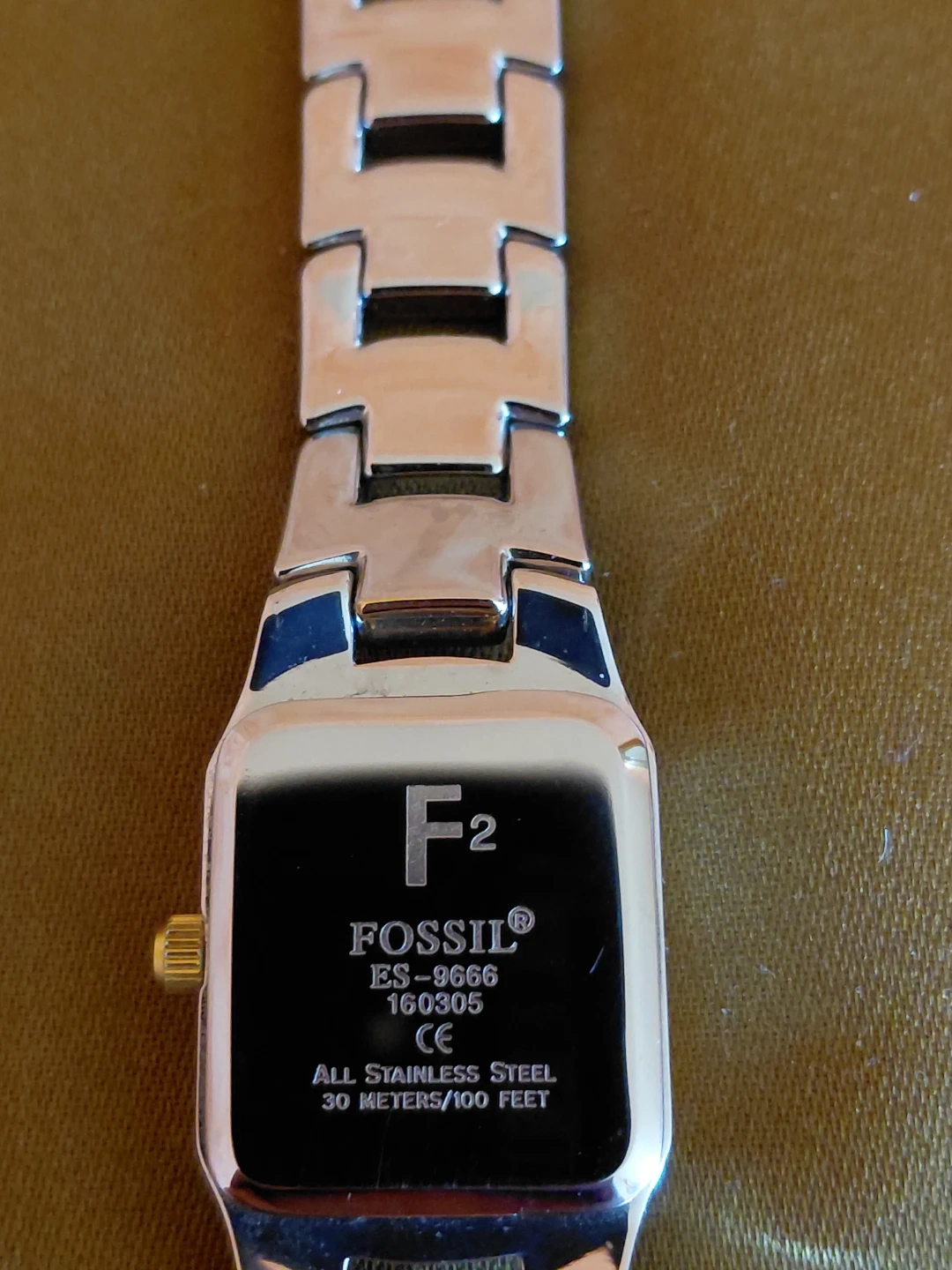 This Fossil watch features a stainless steel band and case. It's water-resistant up to 30 meters. A stylish accessory for everyday wear.