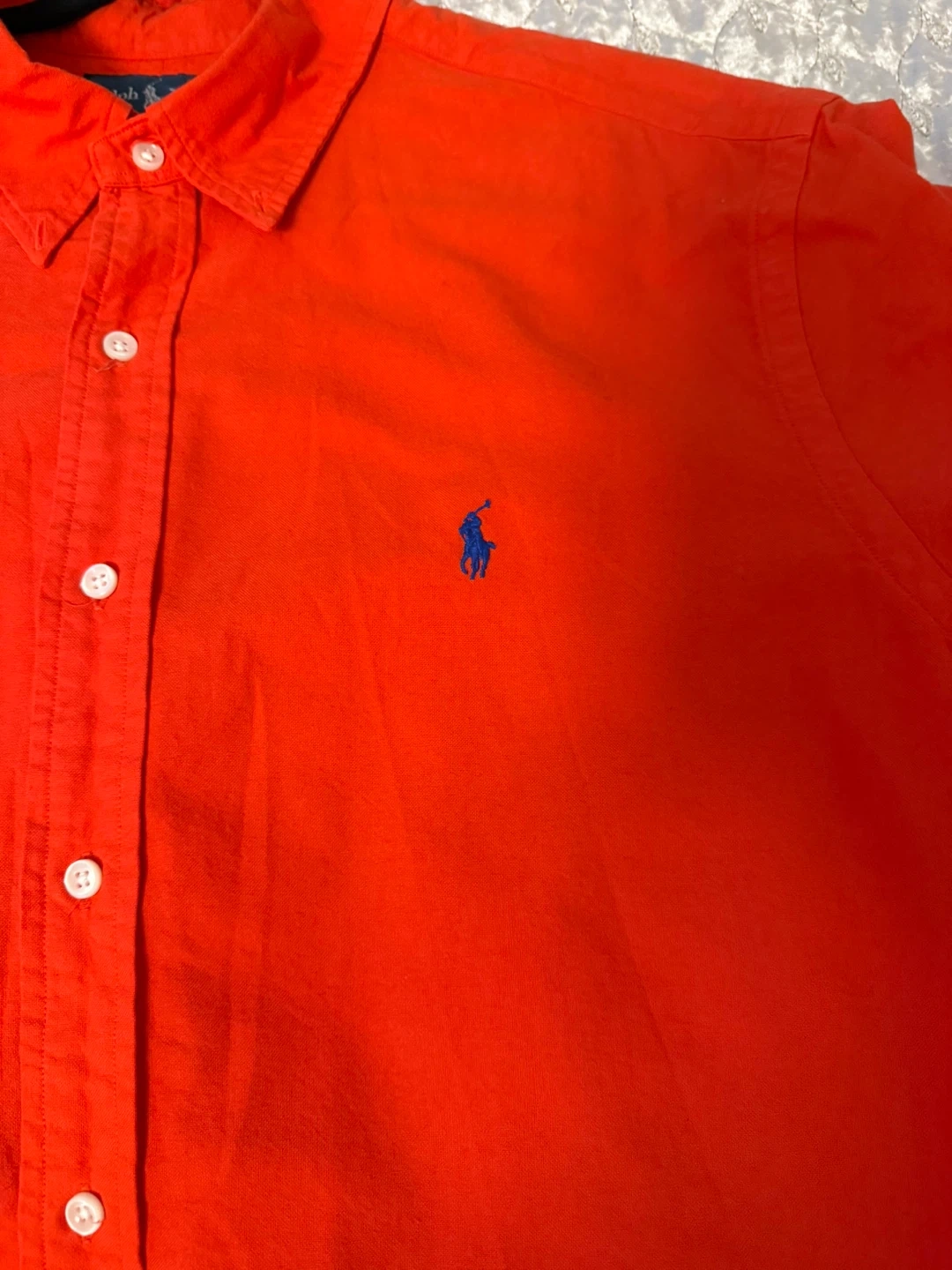 Bright red shirt with embroidered Polo logo. Lightweight and comfortable, perfect for summer and casual wear. Clean, classic style. Perfect condition