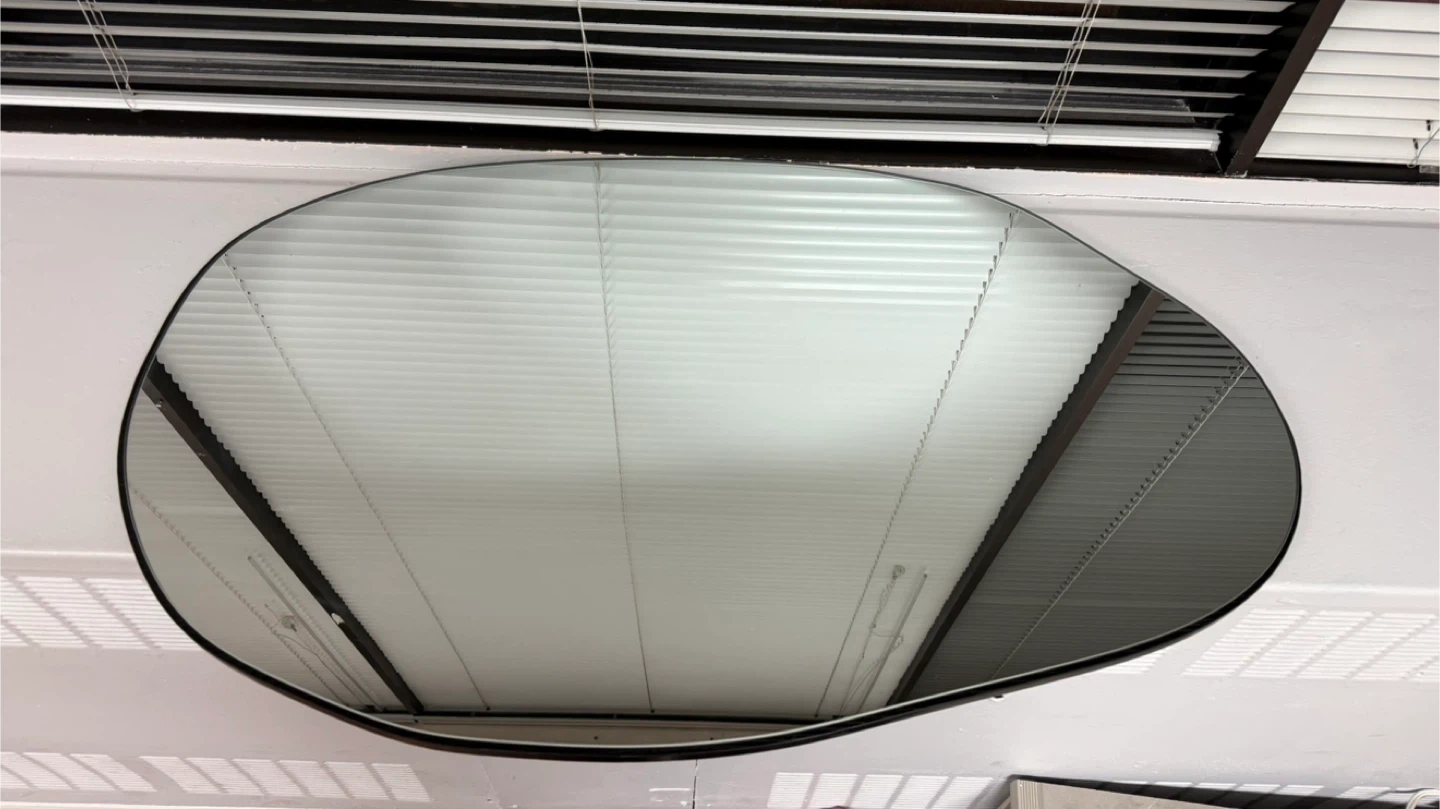 This CASSILANDO wall mirror features a unique asymmetrical design. It measures 33.5 inches by 20.5 inches. It's designed to provide high-definition clarity for your living space.