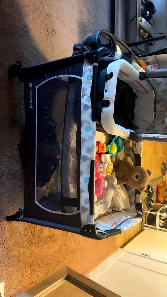 This versatile BabyTrend playard grows with your baby, transitioning from infant to toddler. It features a large playard with a full bassinet and mesh sides for good ventilation. The space-saving changing table flips away, and a deluxe parent organizer keeps essentials like diapers and wipes within reach. It has a one-handed locking mechanism and folds compactly for easy storage.