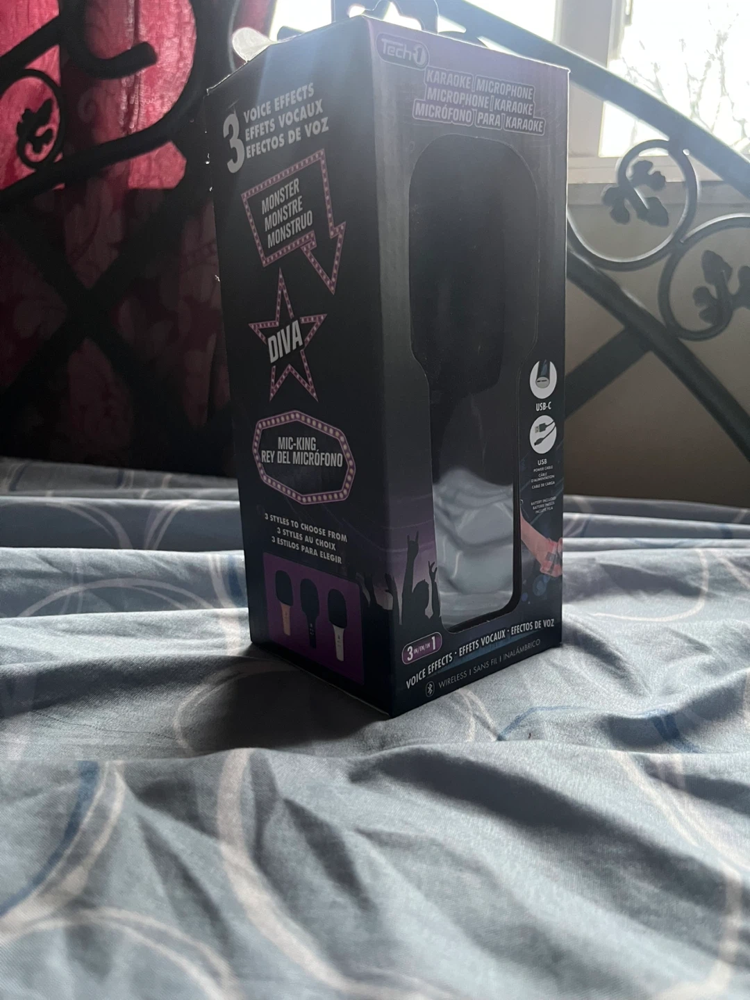 Microphone karaoké sans fil avec 3 effets vocaux inclus. Permet de choisir parmi 3 styles de chansons. Dispose de fonctions de réglage du volume et de la réverbération. Batterie rechargeable intégrée.