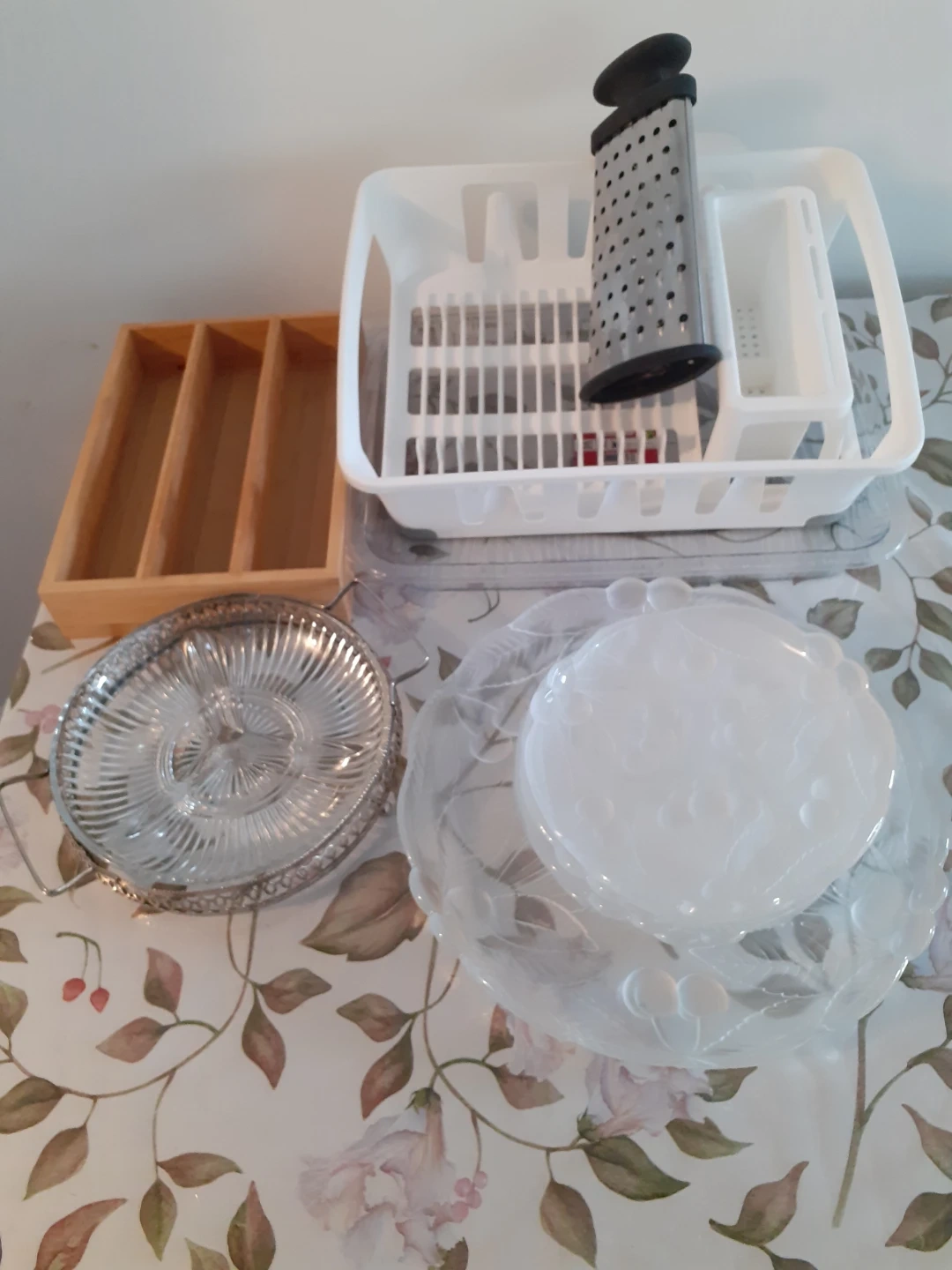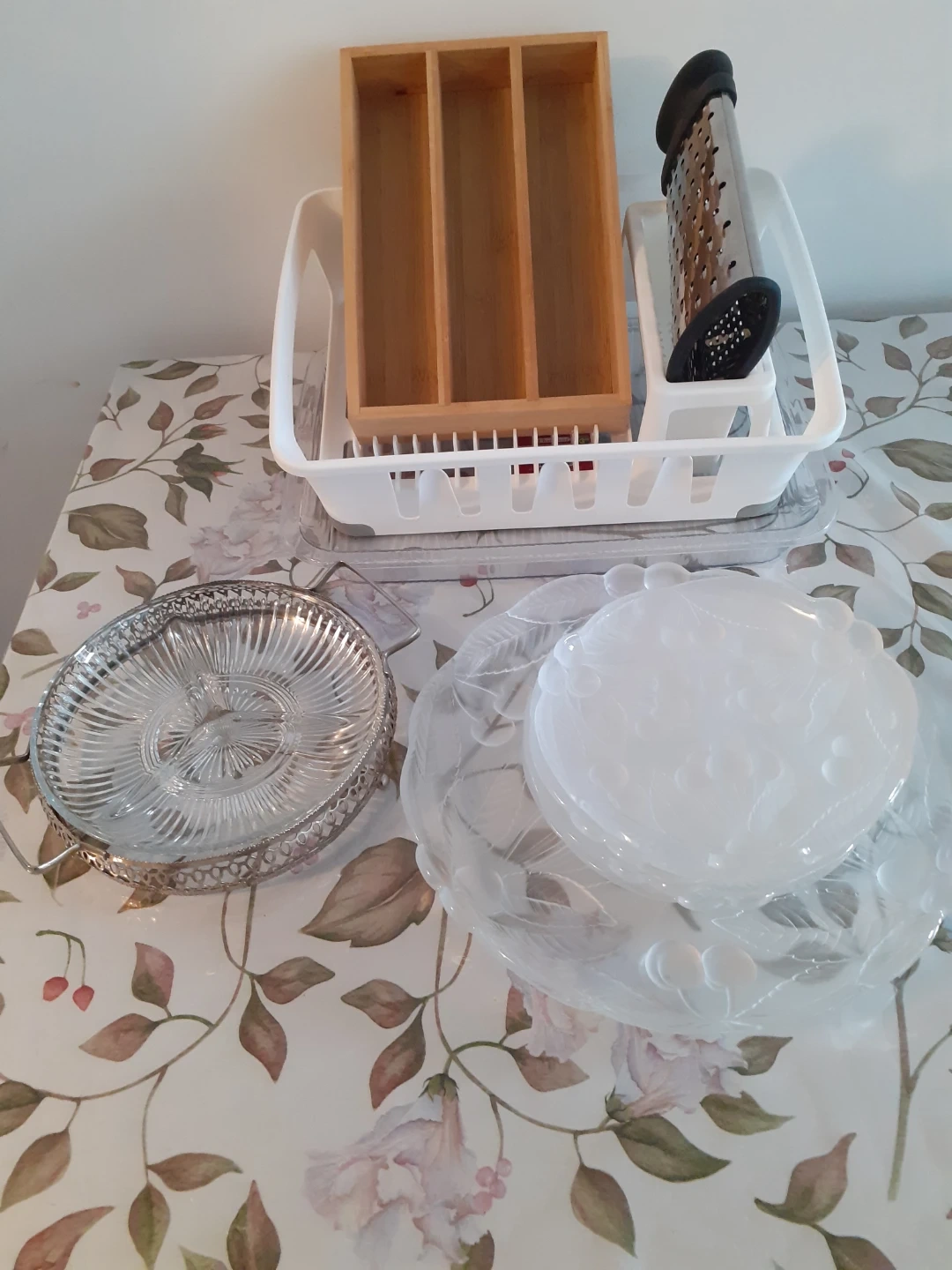 Glass serving dishes and platter