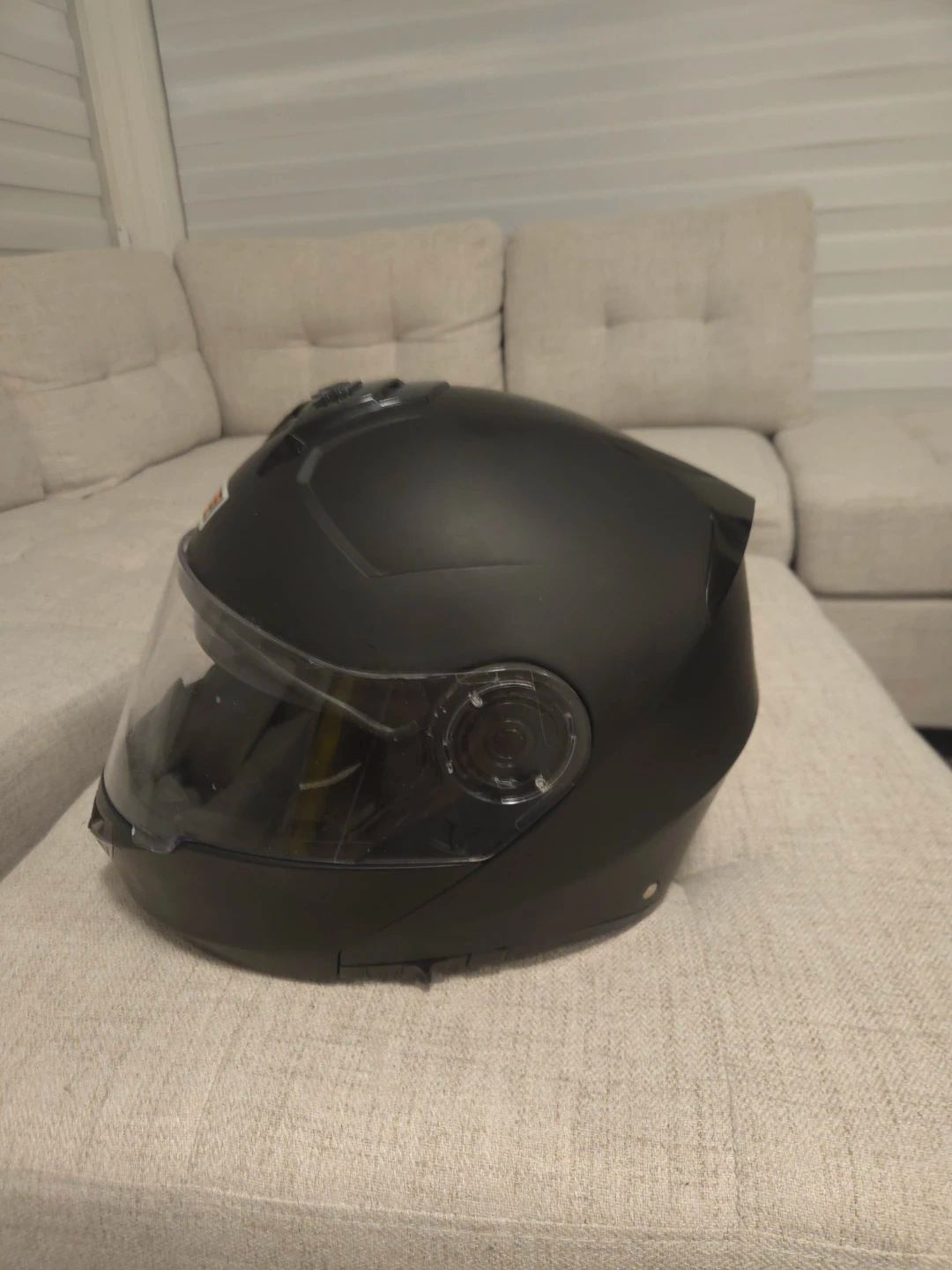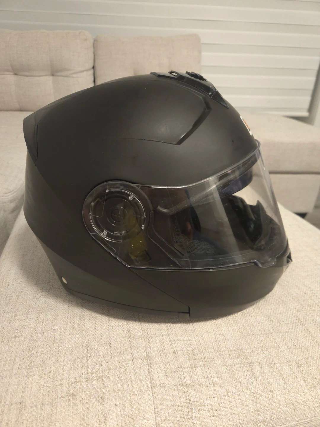Origine Forma full-face motorcycle helmet in matte black. Size Large (59–60 cm). DOT FMVSS 218 and ECE-R 22.05 certified. Clean condition with normal cosmetic wear. Visor operates smoothly. Never crashed.