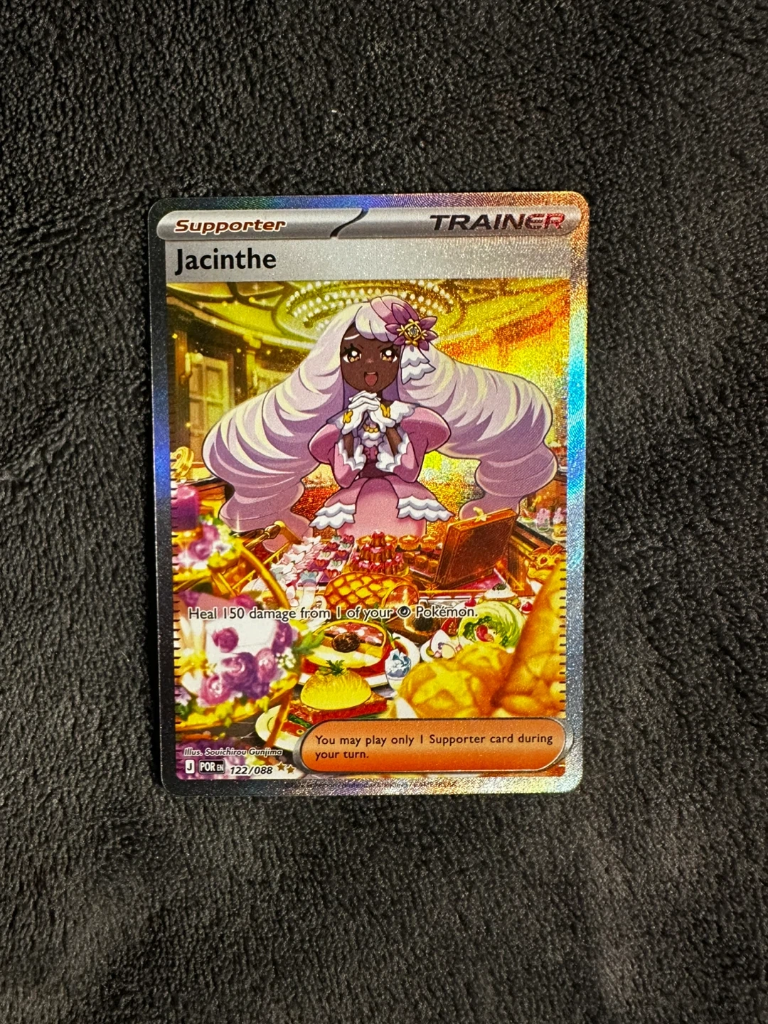 This is a Pokémon TCG Trainer card featuring Jacinthe. It's part of the 122/188 set. The card has the ability to heal 150 damage from one of your Pokémon. - Pulled from a pack -Perfect condition Meetup only in richmond