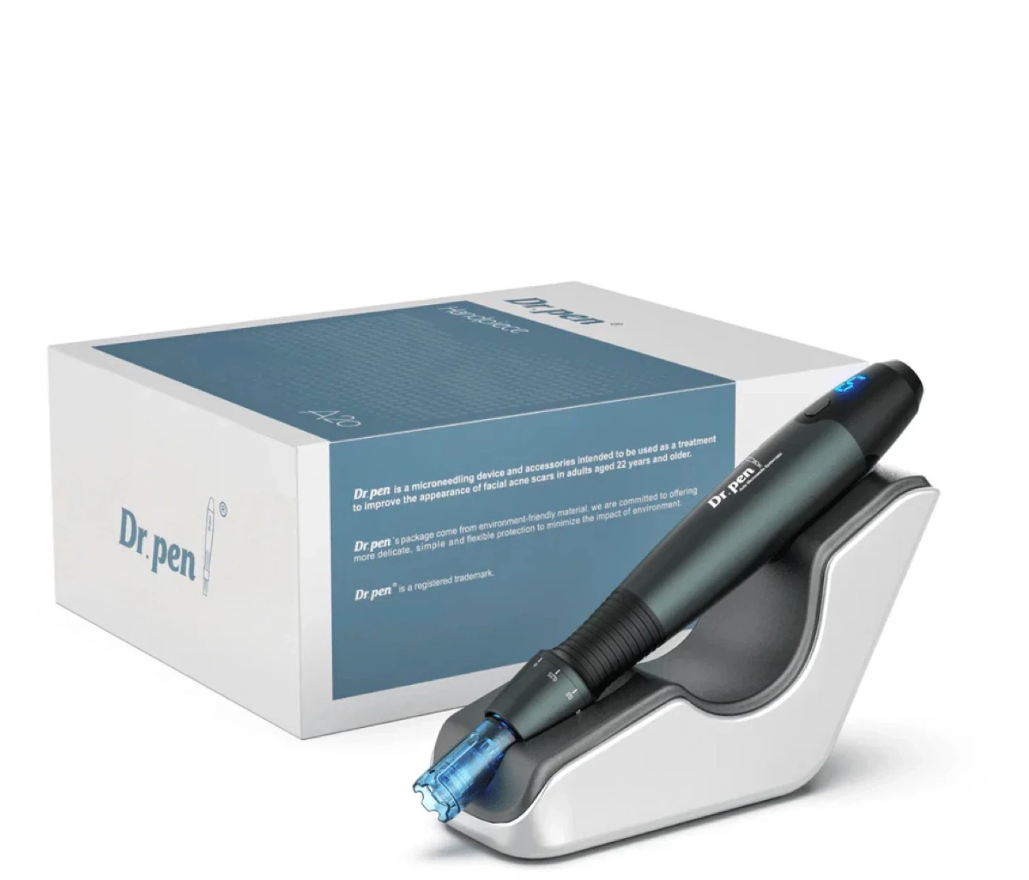 Dr. Pen A20 microneedling pen and 10 disposable needle cartridges for cosmetic use. It includes the pen, a USB charging cable, stand, pen sleeves and cartilage (H14)