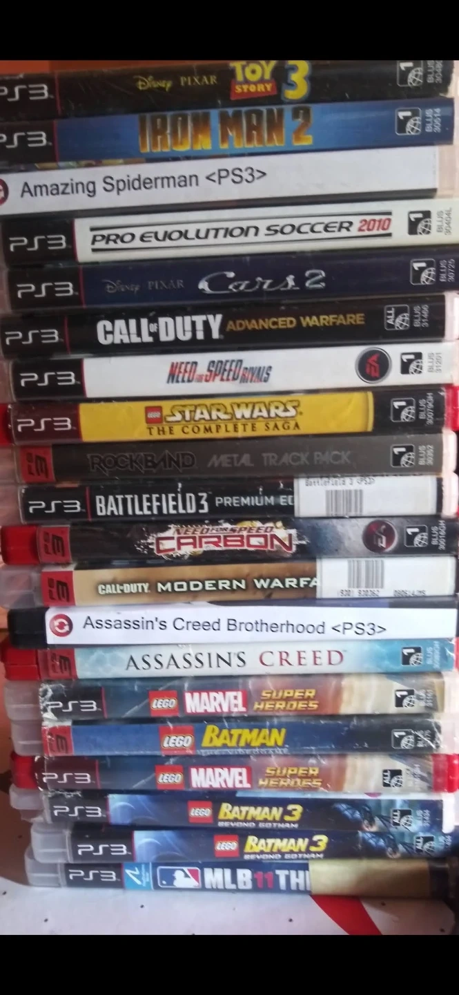 PS3 or PS4 video games. Includes titles like Call of Duty, Assassin's Creed, Star Wars, and Marvel. Games are for PlayStation consoles.