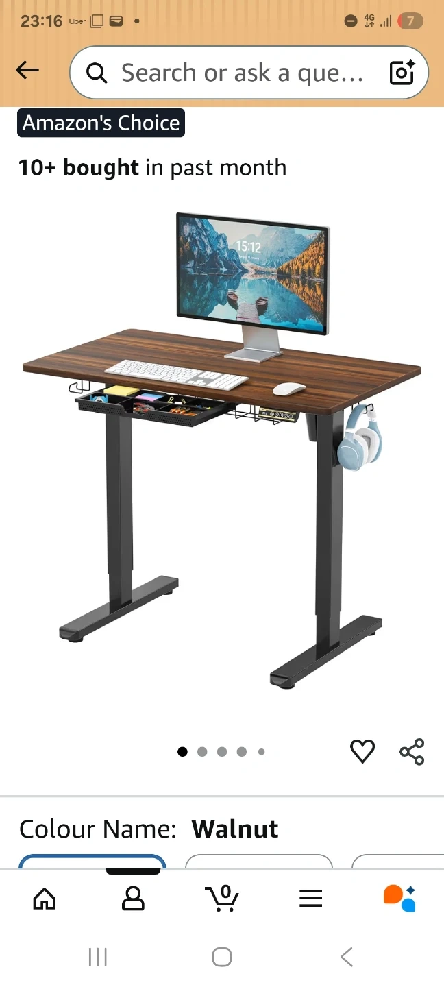 Adjustable height electric standing desk 100x60cm with a beautiful walnut wood grain finish. Control panel with up to 4 presets. Used for less than a year.