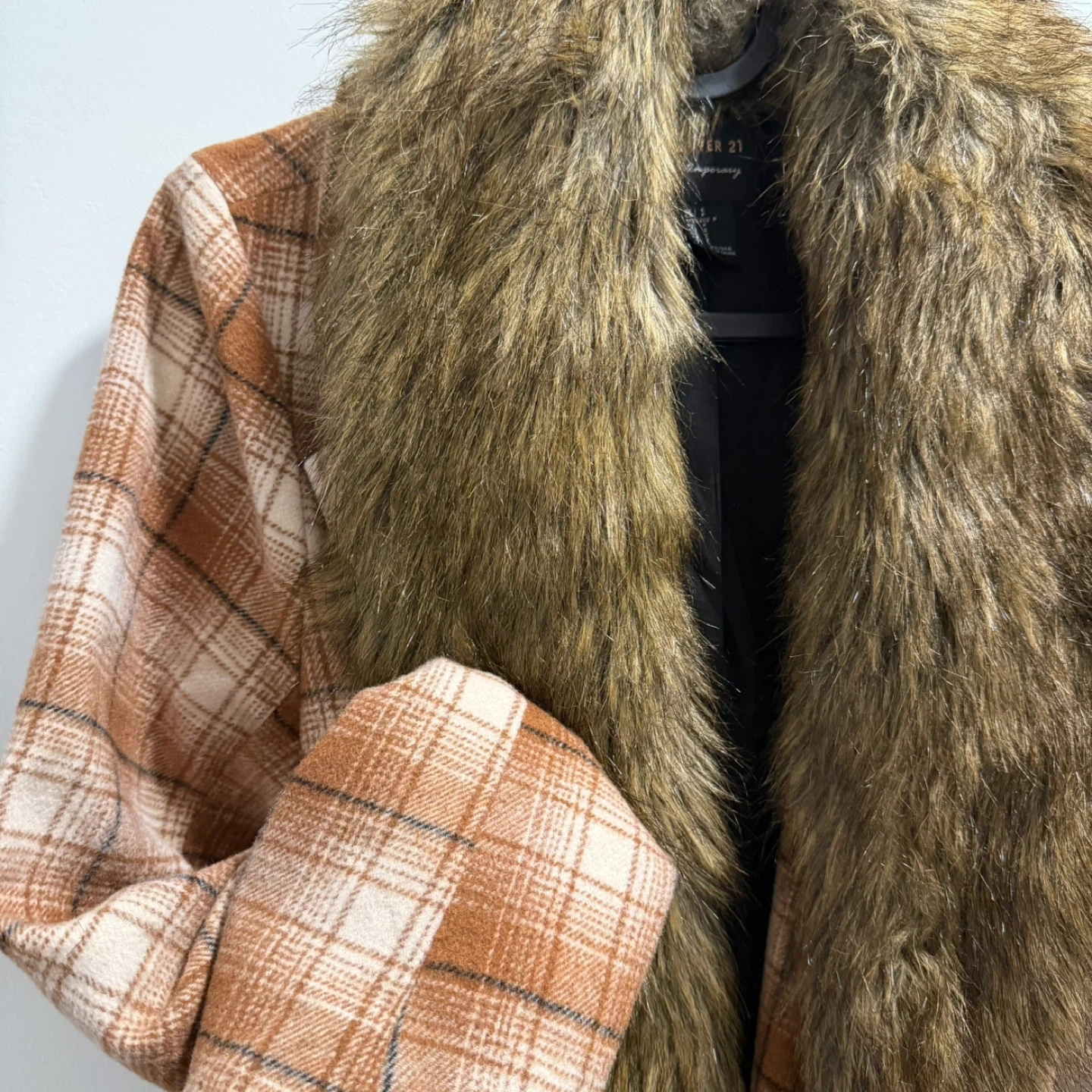 Forever 21 Plaid Coat with Faux Fur Collar - Size S