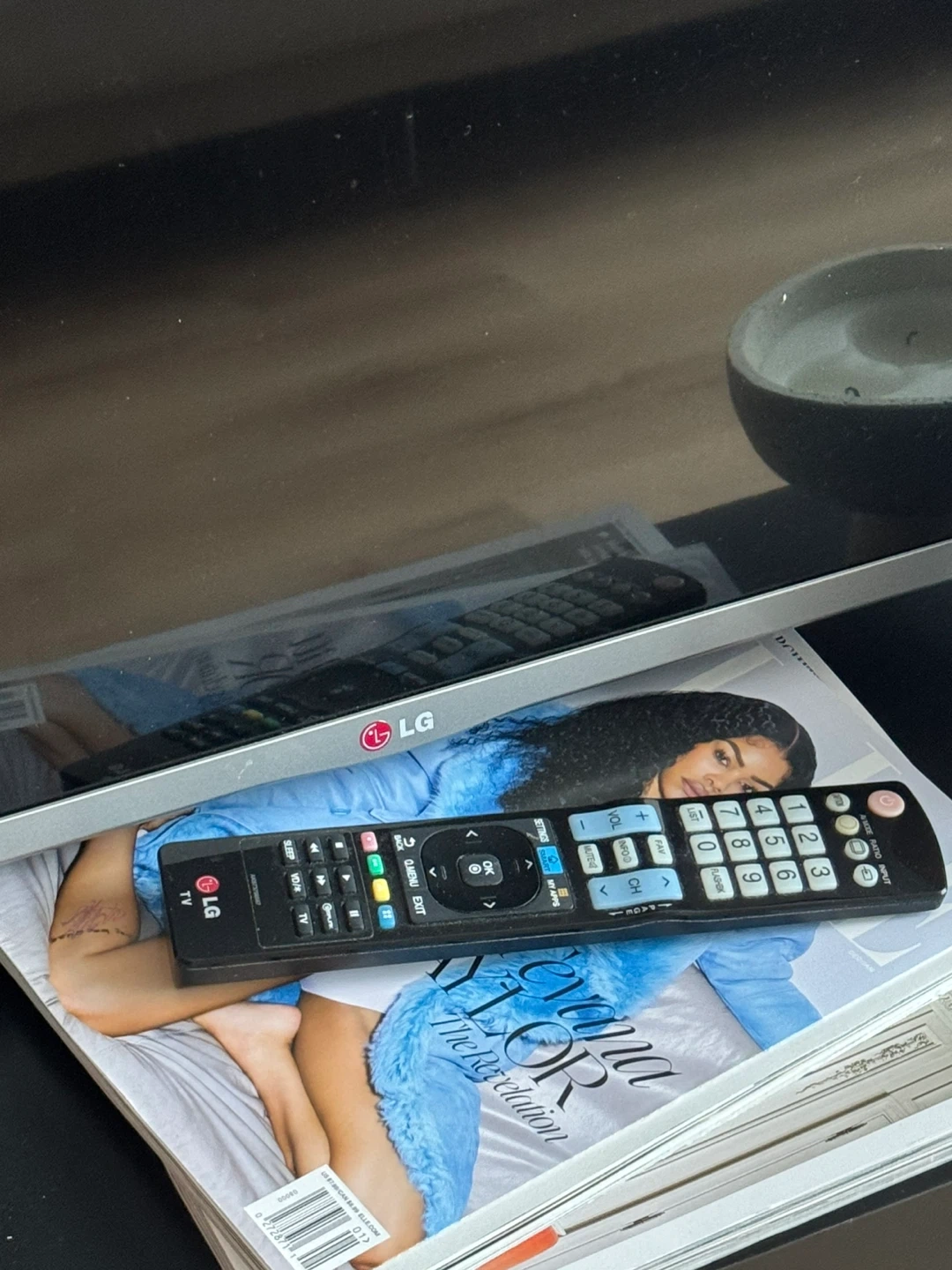 LG television. It's a flat-screen model. Includes remote.
