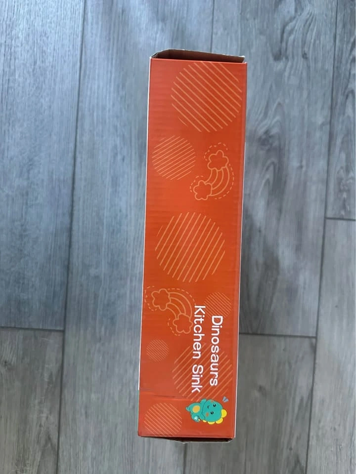 This fun toy combines a kitchen simulation game with a fishing activity. It features an electric pump for running water and a rotating faucet to mimic a real sink, with easy operation via a torque switch. Comes with play food, utensils, teacups, saucers, a fishing rod, and small fish. It's designed with a cute pink dinosaur theme, suitable for children aged 3+.