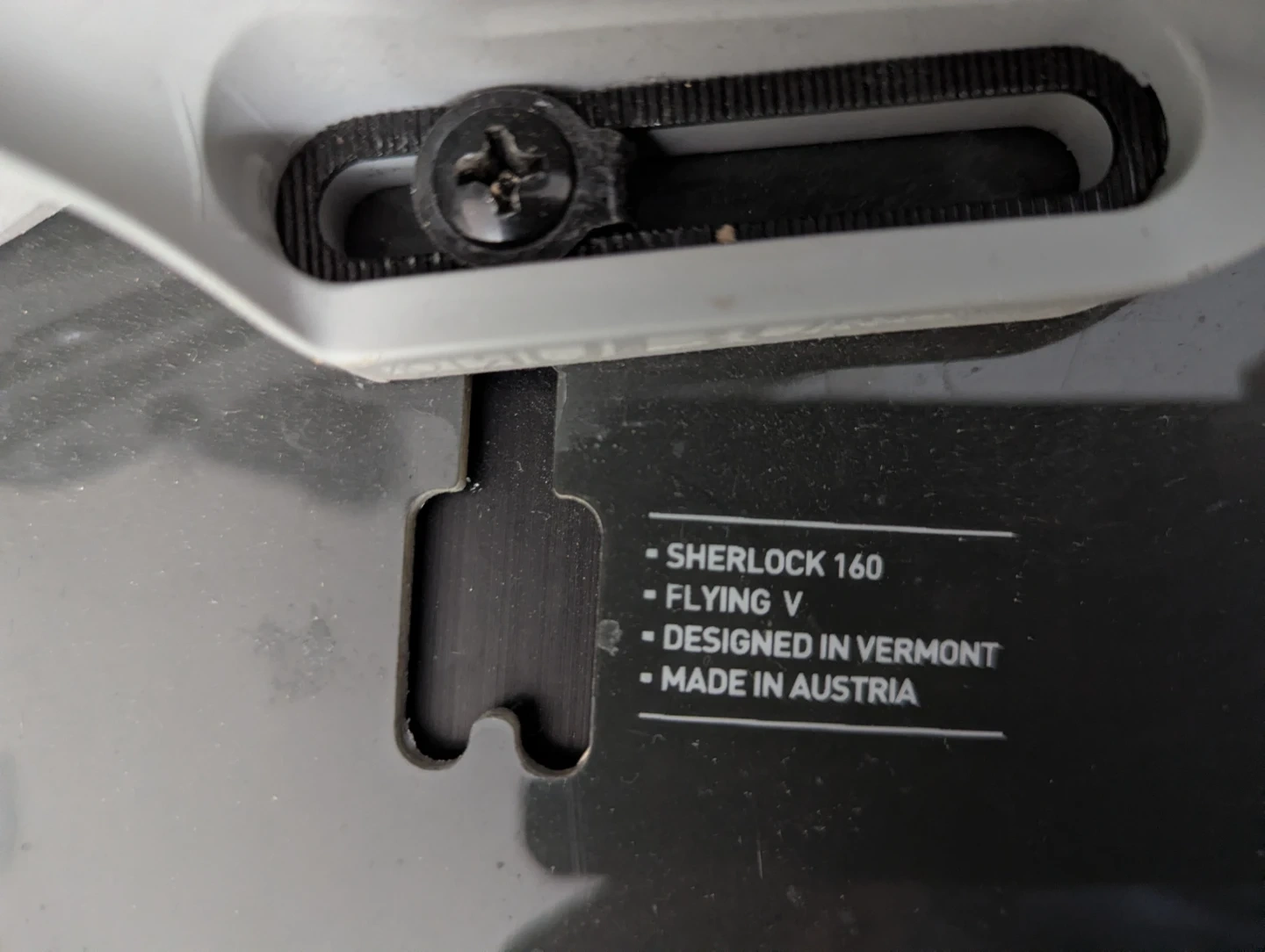 This is a Burton snowboard paired with Cartel bindings. The snowboard is primarily white with black graphic accents. The bindings are grey and appear to be in good condition. It's ready for the slopes!