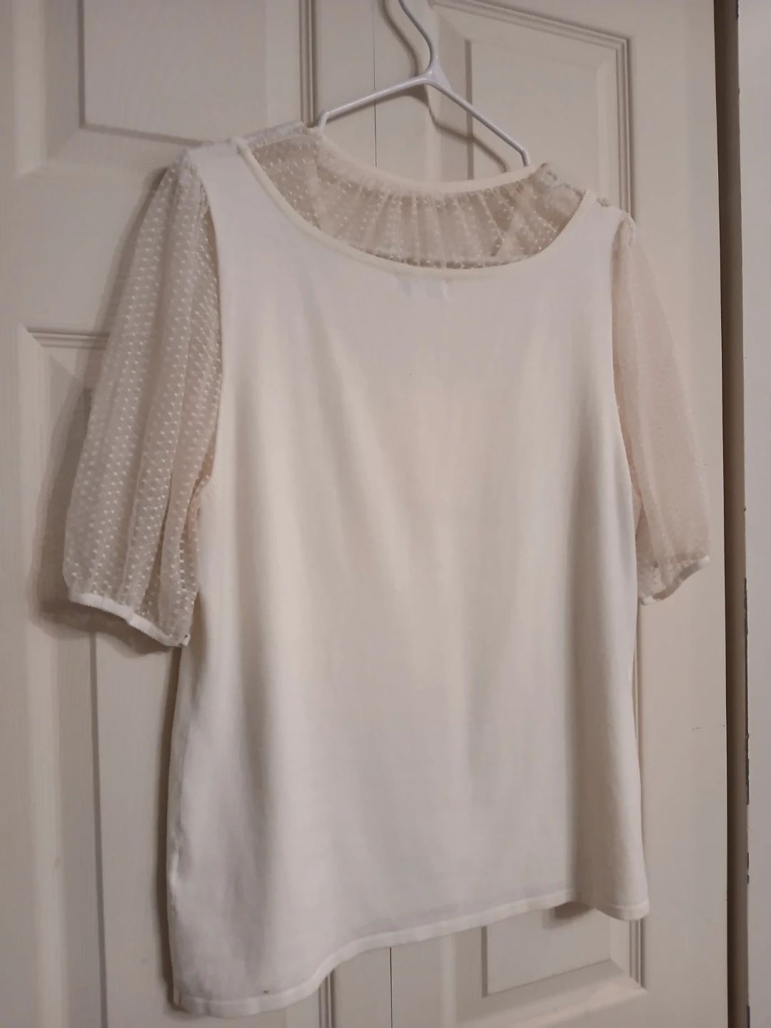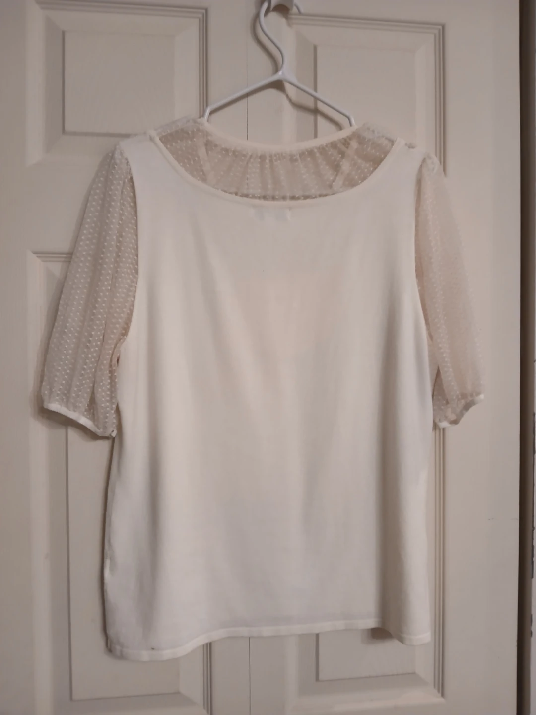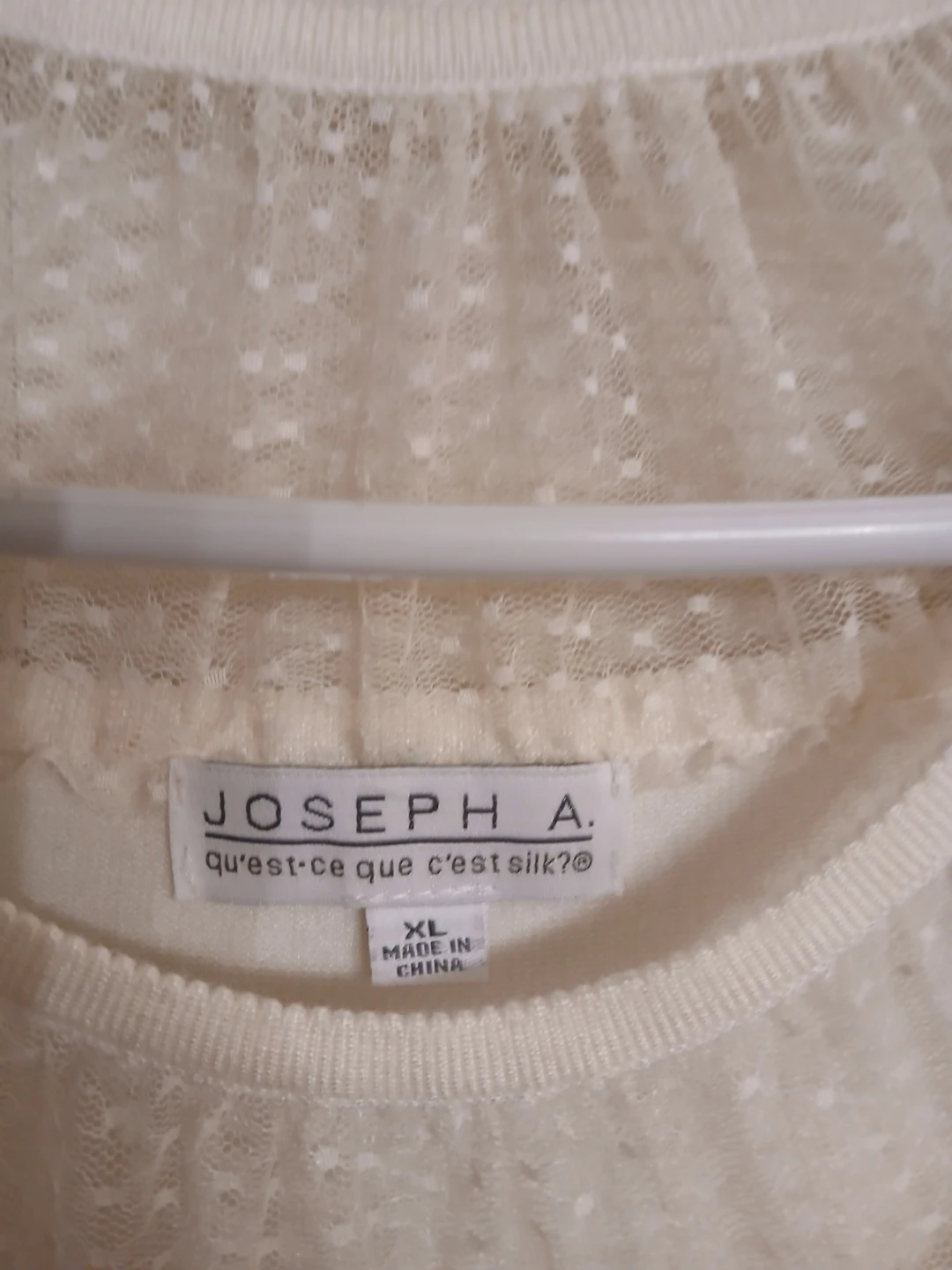 Joseph A cream jewel-neck dotted sheer blouse, XL