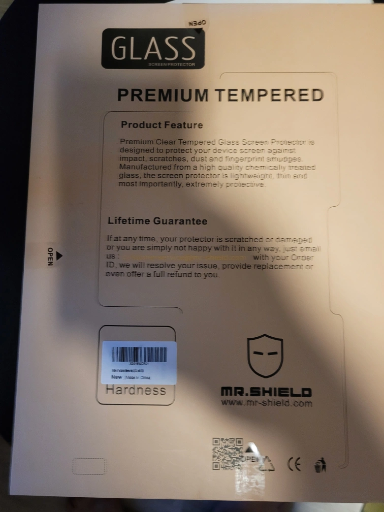 I'm selling a new Mr. Shield glass screen protector. It's a premium tempered glass screen protector designed to protect your device screen against impacts and scratches. The screen protector is lightweight, thin, and extremely protective. It features 9H hardness, HD high transmission, and a 2.5D round edge.
